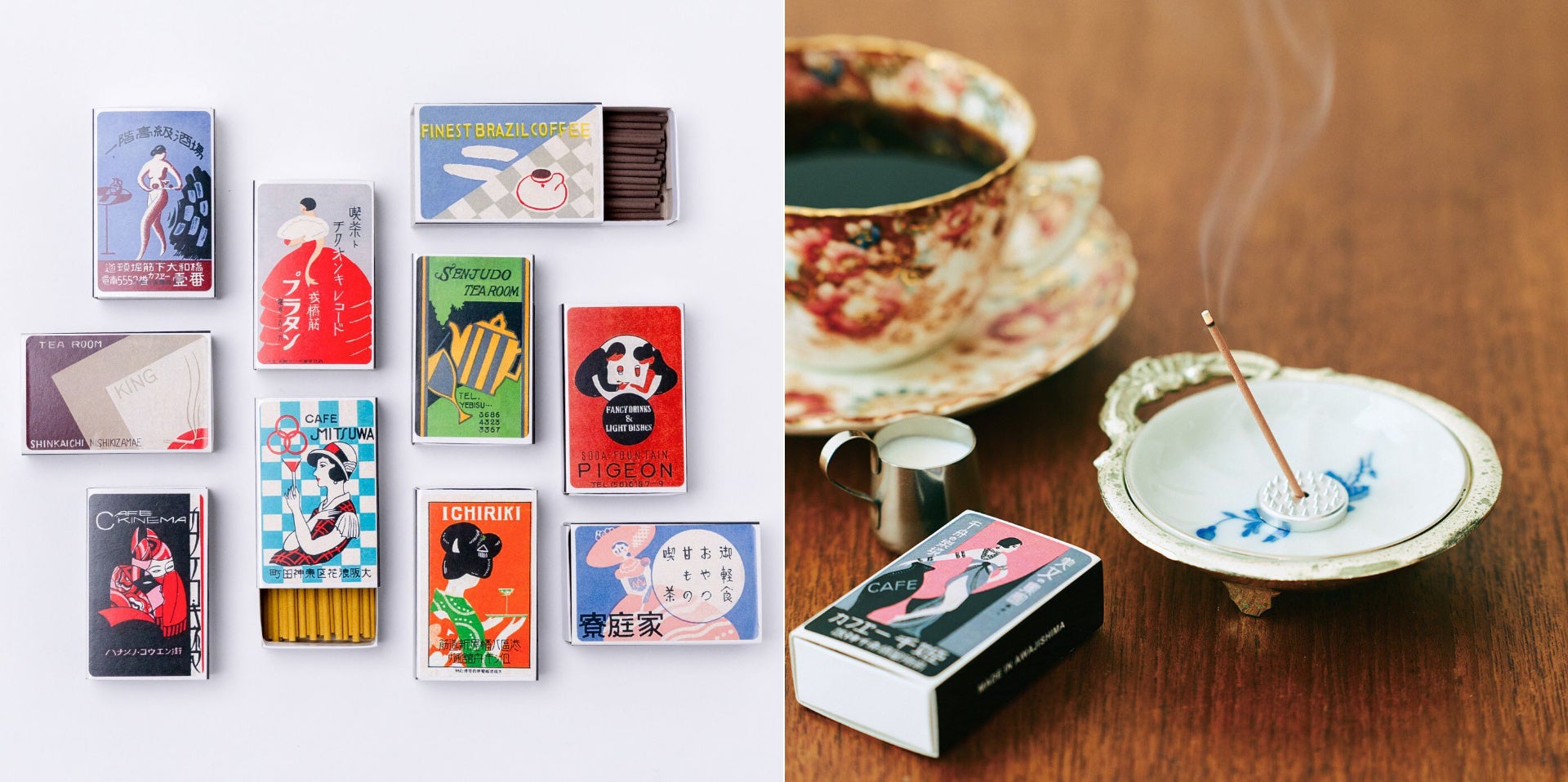 昭和初期のマッチラベルを再現したパッケージと、当時のモダンな世界をイメージしたスティック香のセットです。