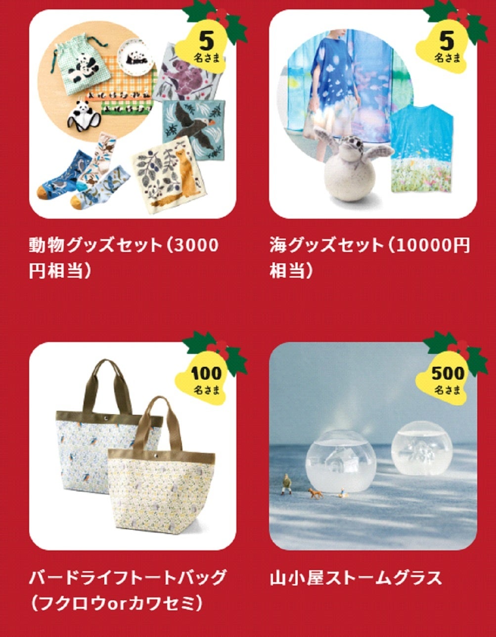 購入者には<フェリシモ賞><協賛企業賞><GO! PEACE!賞>のいずれかが届きます。何が届くかはワクワク・ドキドキのお楽しみです。