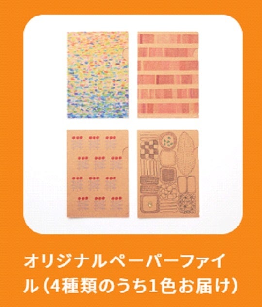 <フェリシモ賞><協賛企業賞>以外の方全員に届きます。チャレンジド(障がいのある方)のアートをあしらった古紙100%のA5サイズのぺーパーファイルです。