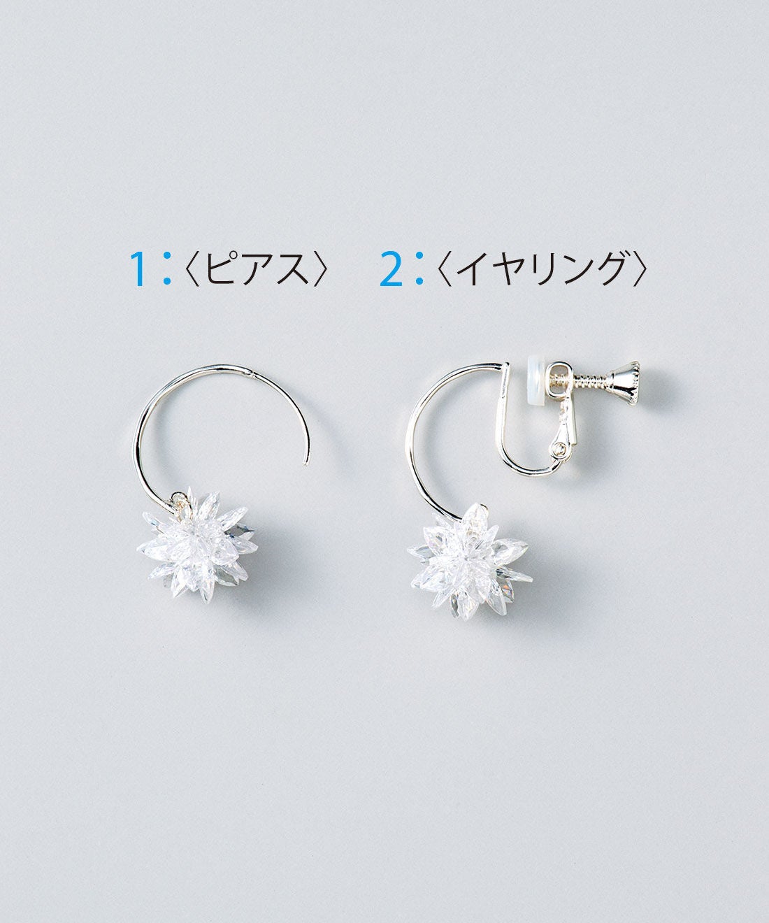 ピアスとイヤリング、どちらか選んでお買い求めいただけます。