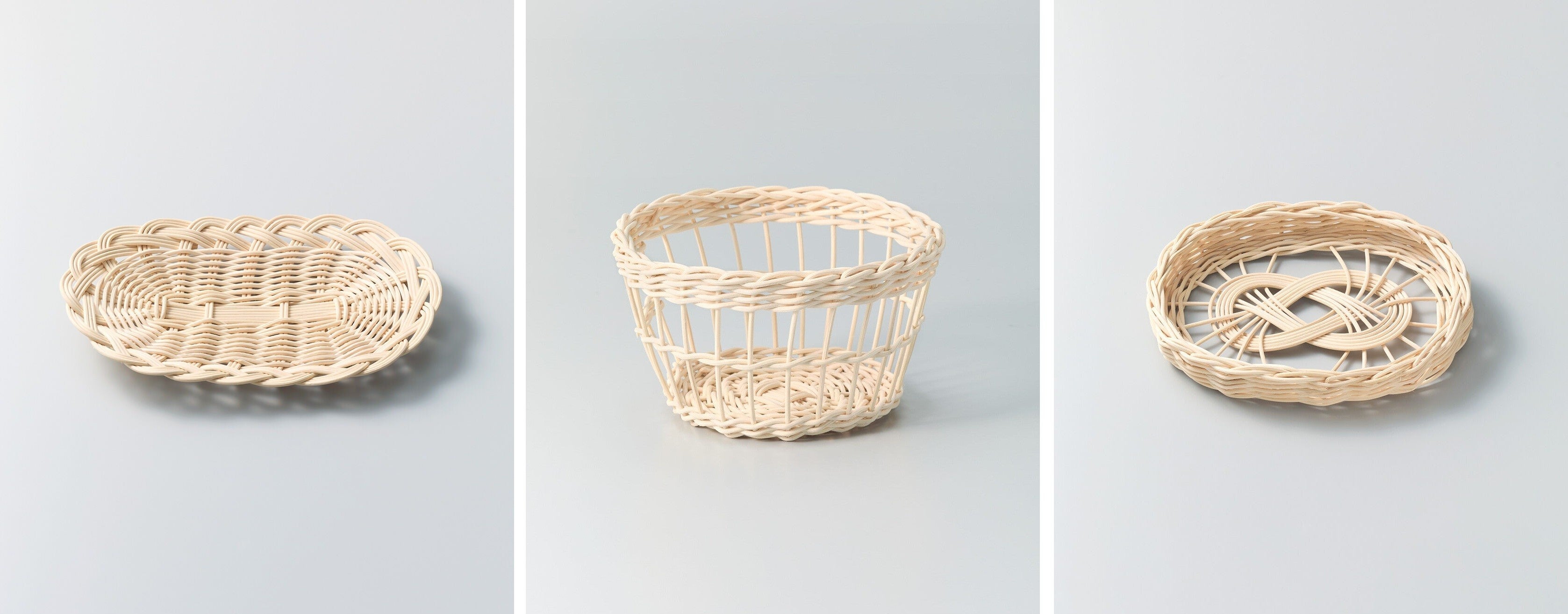 左から〈オーバルトレイ〉〈格子のかご〉〈デザイントレイ〉