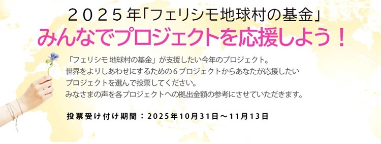 応援(投票)の数は、「フェリシモ 地球村の基金」から各プロジェクトへの拠出金額の参考にさせていただきます。