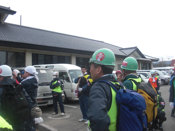 と人だかりができて、あっという間にその日の分がなくなってしまうようになったのです。みなさん、誇らしげに自分のヘルメットにそのシールを貼ってその日の作業へ出発していきます。もともと、ここにいる人たちは日本各地、いや世界中から集まってきた他人同士ですが、こういう共通のトレードマークを持つだけで不思議と一体感が出てくるんですね。