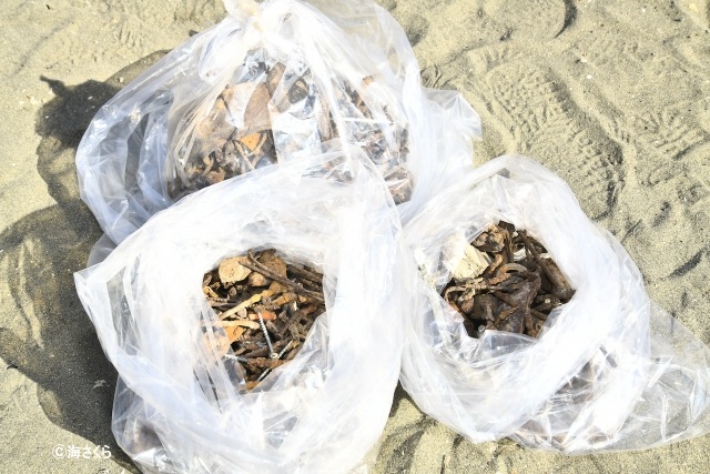 毎月休まず、神奈川県藤沢市片瀬東浜でゴミ拾いを実施しております。NPO法人海さくらは2005年から活動を開始し、今年で20年目の活動となりました。1月に実施しました第207回海さくらゴミ拾いでは、北風が強く、浜が削られることから海の家の建築・解体で浜に落とされた「釘」が浮かび上がってきていました。参加者数百名と危険な釘を拾い集めました。めったに雨が降らない海さくらゴミ拾いですが、3月には、久しぶりに雨が降りました。雨も自然の一部、我々は雨天決行・荒天中止としており、風も強くなかったので、雨でも実施しました。雨を感じることの大切さ、雨が降ると街のゴミが排水溝→下水道→川→海 に多くやってきます。街がキレイにならないと海はキレイにならないと、街と海のつながりを伝えるチャンスでもあるのです。雨を楽しみながらゴミ拾いを実施できました。