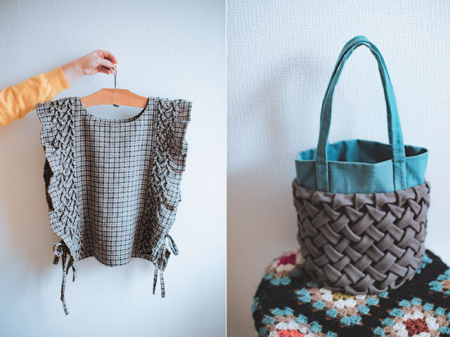 何か作ってみたいものがあるときに、どうやったらこのかたちにできるのか、どうすればこの模様になるんだろう?というところから考えて、とりあえず手を動かしてみる。当時はそれが手芸だとさえ意識していなかったそうですが、ものづくりへの探究心とプロセスの基盤は、子どものころの遊びから培われ、現在の創作活動にも影響しているように感じます。