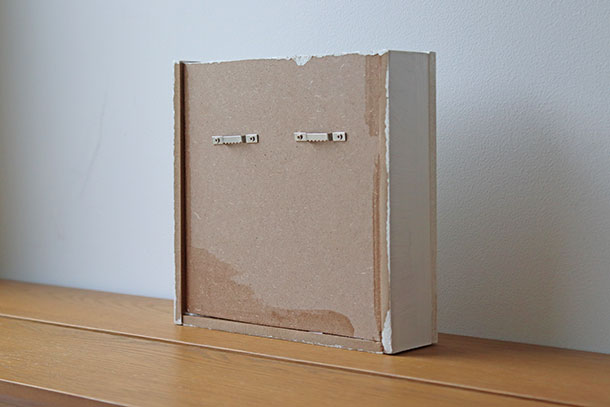今回使用したMDF材は、繊維状にほぐした木材を集めて接着剤で成形した「繊維板」のひとつです。切りやすく、やすりがけも簡単なのでDIYにはぴったり。また板が反ることもないため、どこで買っても同じような品質のものが手に入ります。こちらの板も100円均一ショップで購入しました。