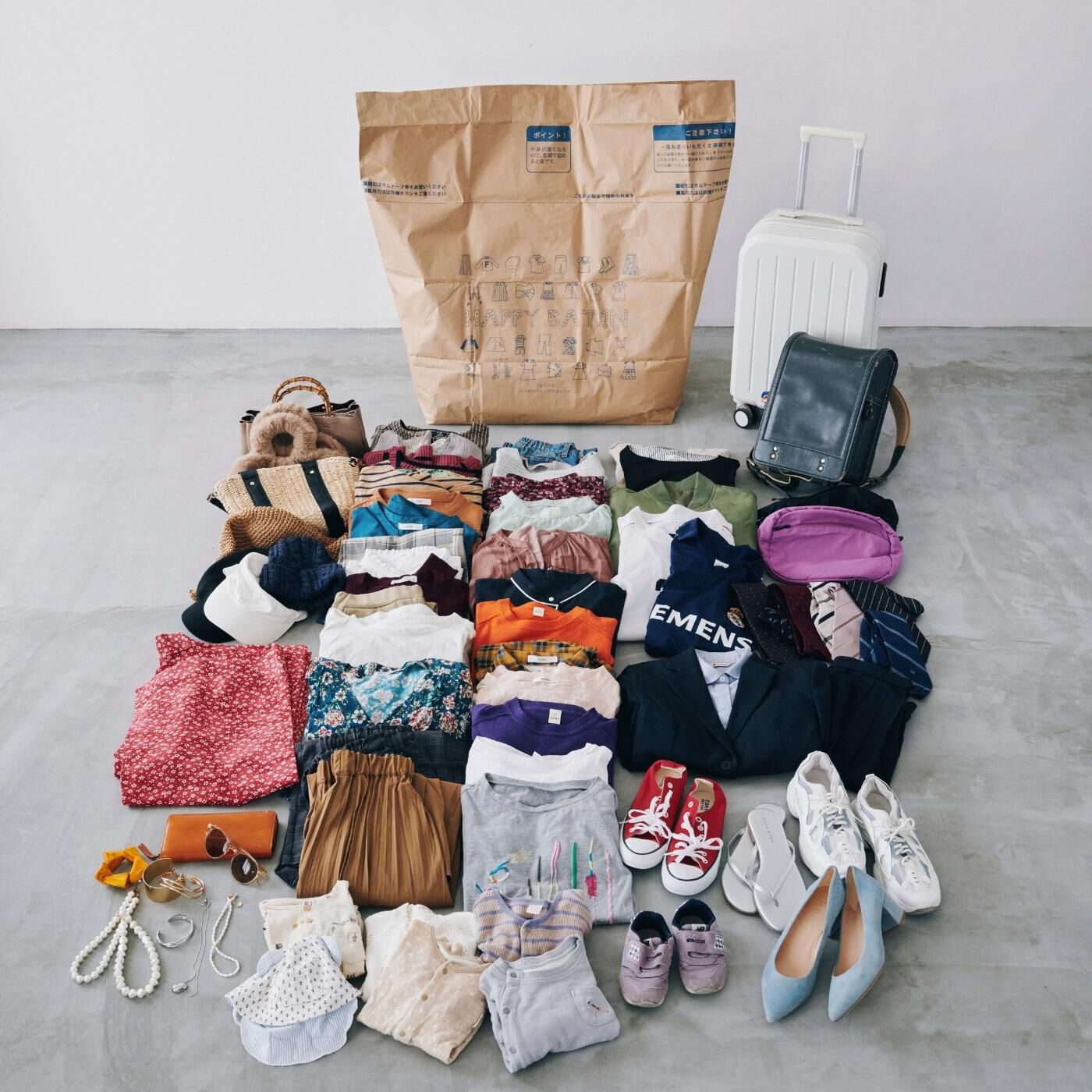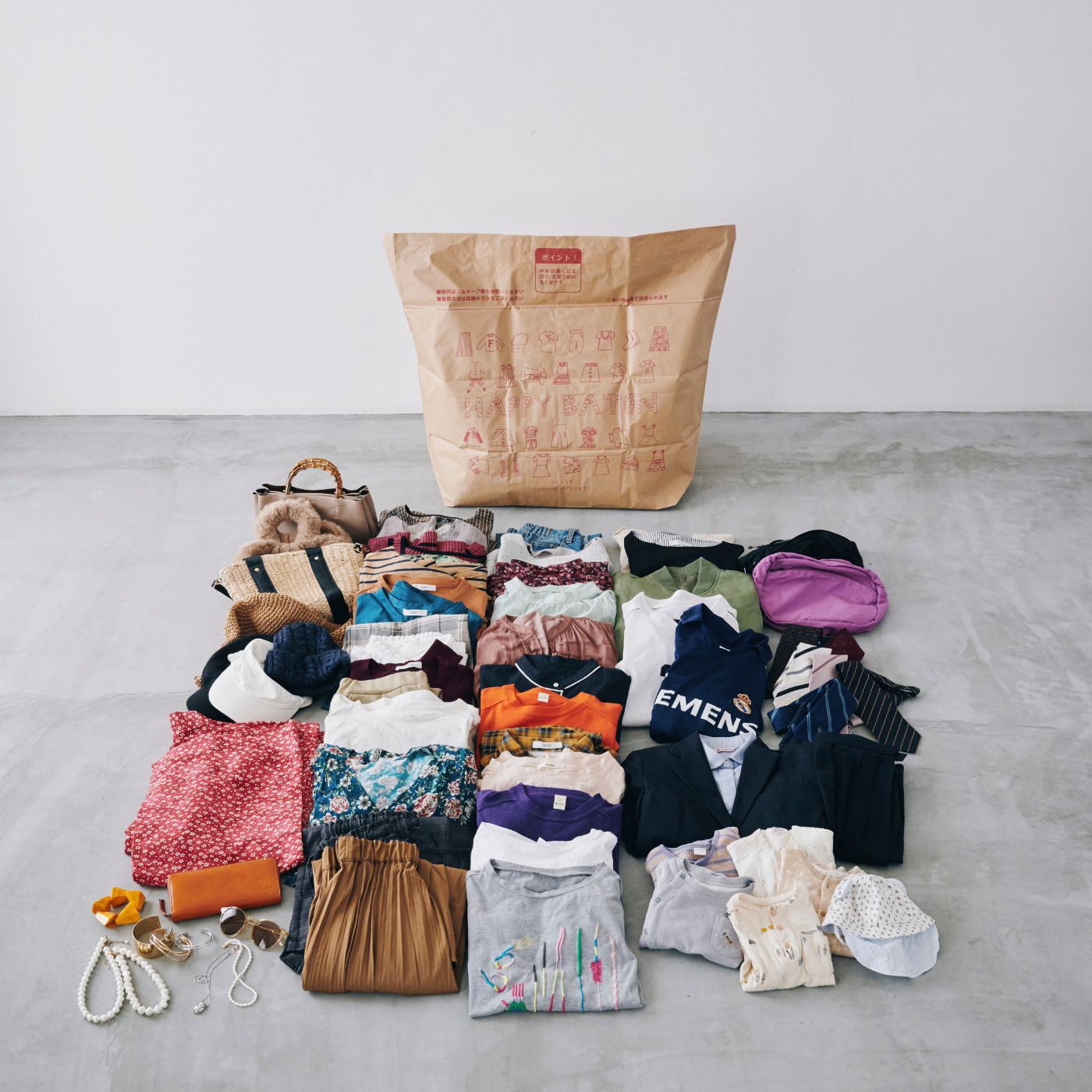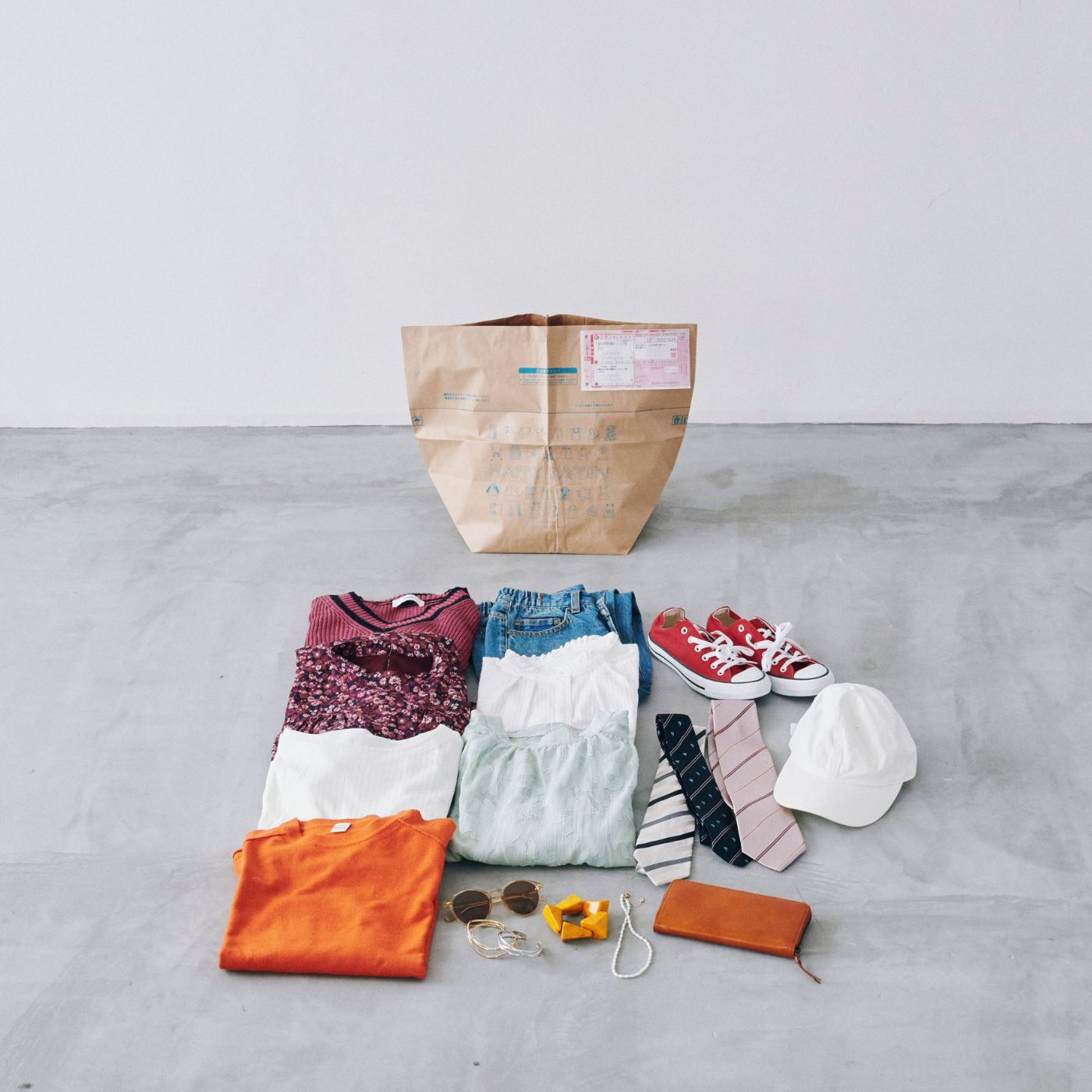 ご不要になった衣類の量に会わせて回収袋のサイズを選んで購入し、届いた袋に洋服、バッグ、靴といった衣料品などを詰めて配送業者へ連絡すると、古着回収袋を引き取りにきてくれます。