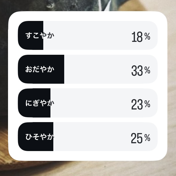 毎晩、ひと息ついた夜の時間帯に、Instagramのストーリーズでアンケートをひとつ投稿します。