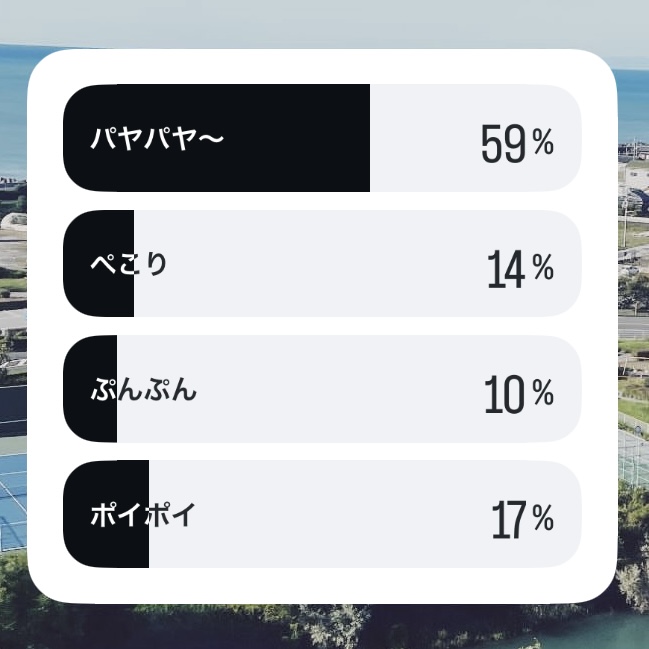 平日勤務のひとは一週間の終わりの金曜日。心が思わずつぶやいたのは、どんなひとことだったのでしょうか?いちばん多かったのは「やれやれ」。祝日があって、ふだんより一日少なかったはずなのに、なんだかぐったり。疲労感からつい出てしまうひとことかもしれません。週末ゆっくり休めたらいいな。「とほほほ」を選んだひとはちょっと残念な気持ちを抱えていたのかも。自分を責めたくなるときもあるけど、どうしようもできないことは割り切ってみると少し心が軽くなるのではないでしょうか。「よっしゃ」を選んだひとは、逆にちょっといいことがあったのかな。達成感や褒められたとか、ガッツポーズが目に浮かぶようです。「まじで?」は少数でした。耳を疑うような驚きニュースがなかったのは、平穏に過ごせたしるし。編集部は「よっしゃ」に一票。小さな達成感をかみしめました。