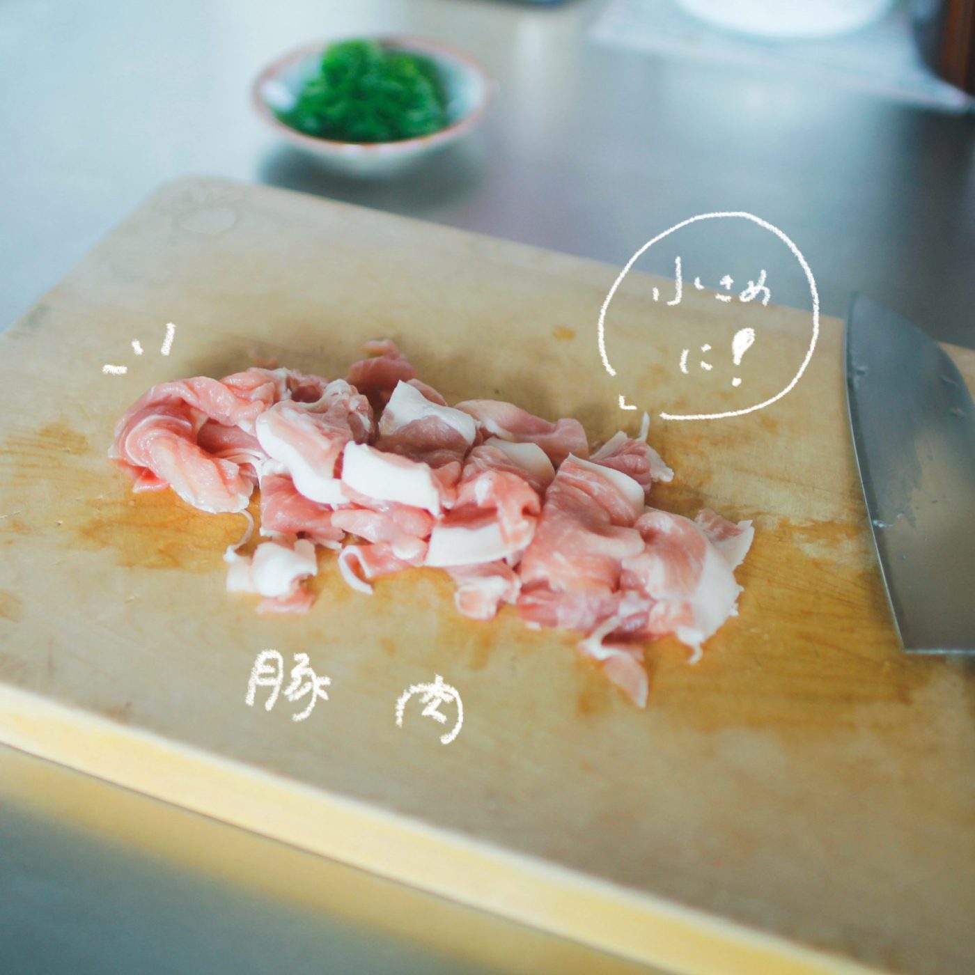 豚肉を切ります