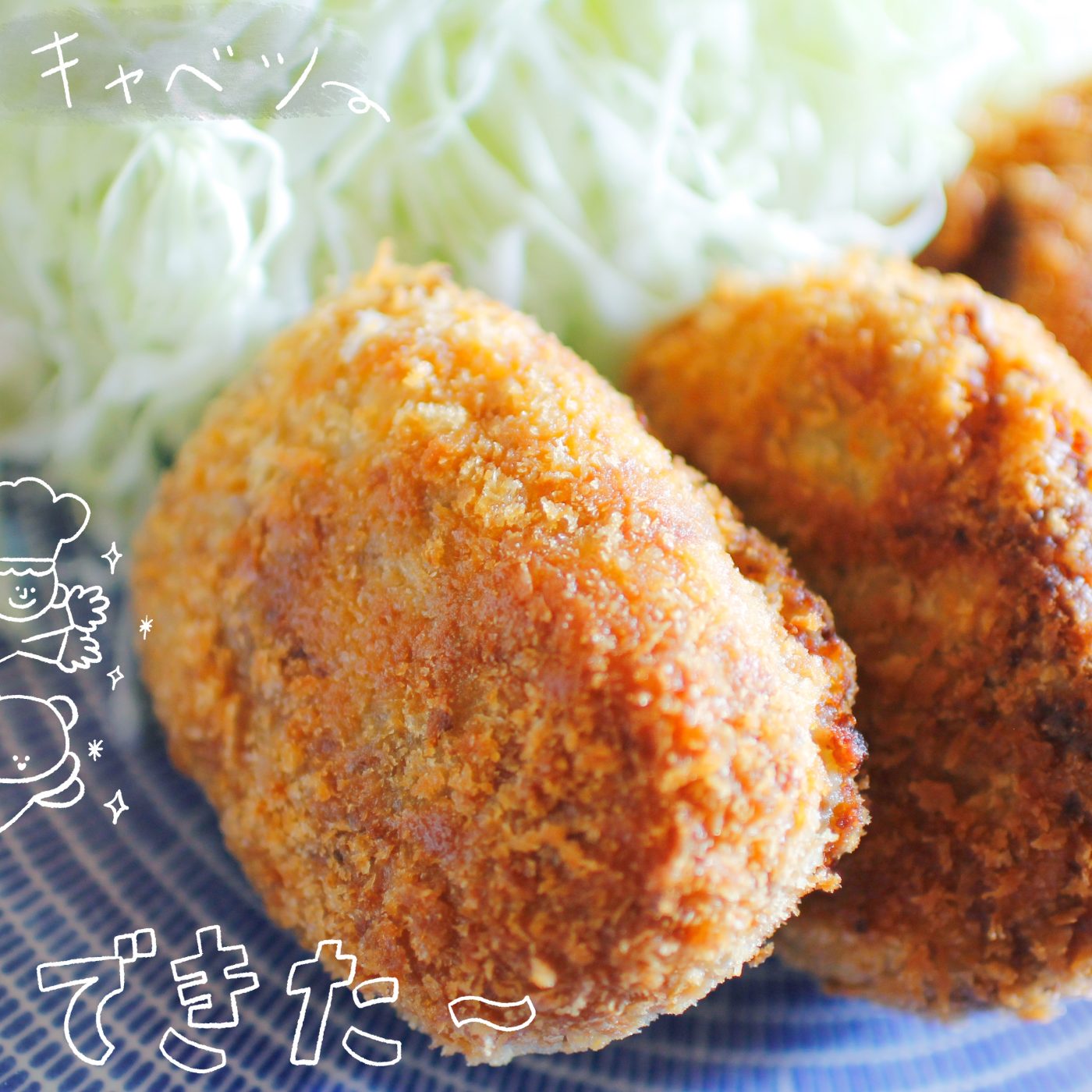 千切りきゃべつを添えて完成!