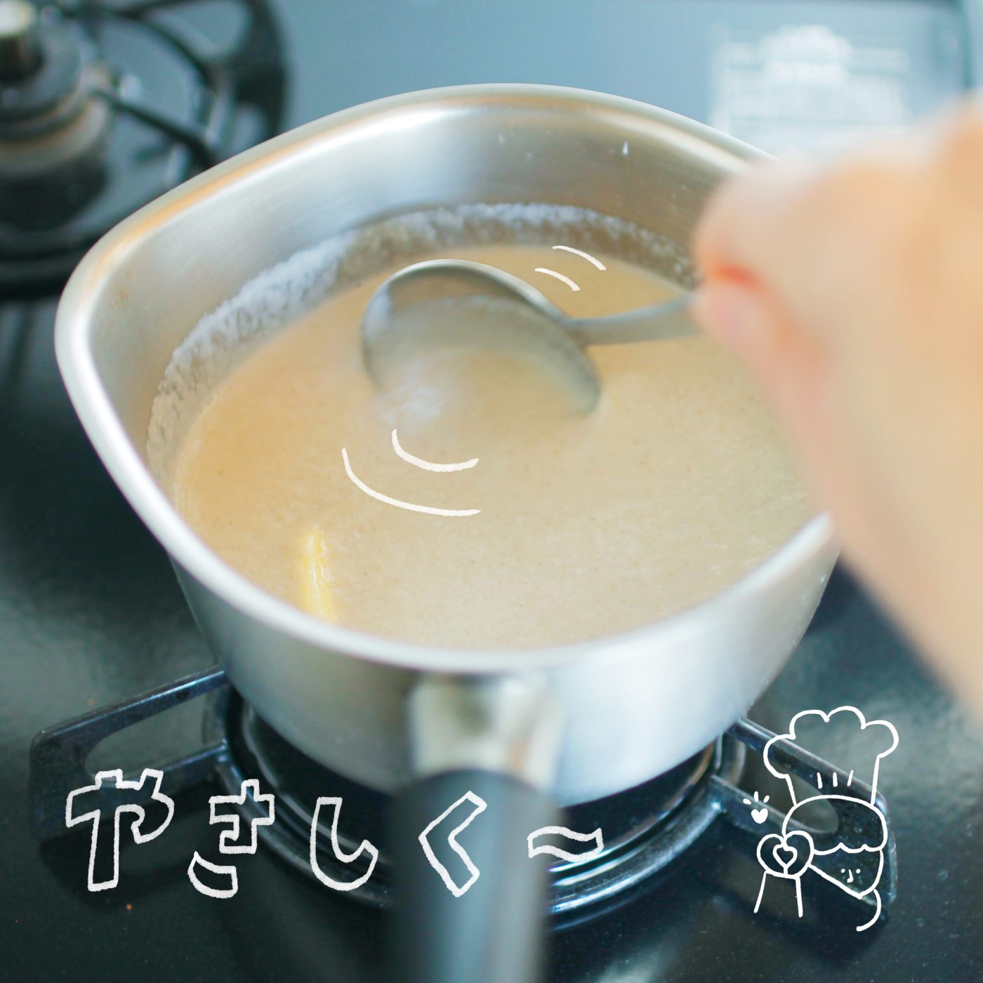 牛乳と調味料を加えます