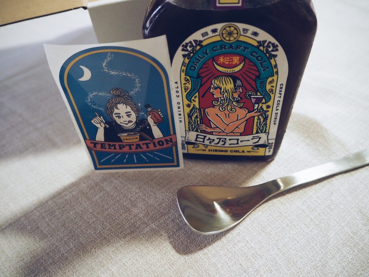 鮮やかなパッケージに包まれたクラフトコーラのシロップに、なめらかでまっすぐなアイススプーン。それに、かわいいイラストのステッカー。