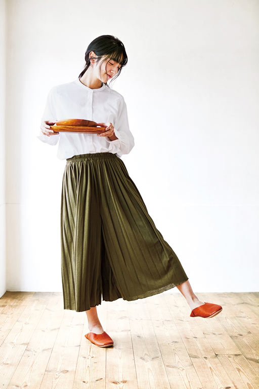 フラウグラット きちんと顔なのにらくちん カットソー素材のプリーツスカーチョの会