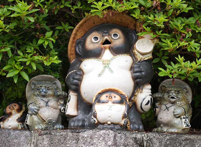 工房の入口では、さっそく信楽焼のたぬきたちがお出迎え。