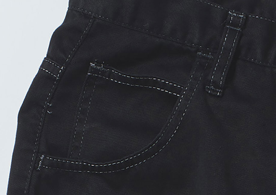 - ●縫製糸、刺繍糸、ボタンホールなどはポリエステルが使用されている場合が多く、その部分は元色のまま残ります。例えば、元色が白の衣類でそれを黒に染めた場合、縫製糸がポリエステルだと黒の服に縫製糸が白いステッチとして残ります。