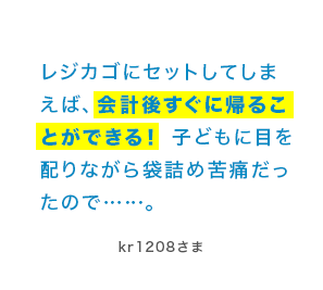 会計後のわずらわしい袋詰め作業から解放!家事効率もアップしそう。