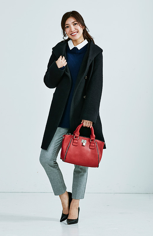 師も走る師走! お仕事もプライベートもとにかく多忙なこの季節。忘年会という名の集まりは週末の夜に限らず、平日のアフター5やお昼時にブッキングされることもしばしば。急激に冷え込むこの時期の通勤コーデは防寒メインになりやすいけれど、華やかで美しくありたいイベントごとが集中していることをお忘れなく。待ち合わせの時点でその日の印象は8割方決まると言っても過言ではないので、コート選びは慎重に。暖かさはもちろん、着映えするデザインも重要なポイント。コートを脱いでもきれいに見えてあったかい、大人顔のシンプルニットをさらりと合わせておけば万全。