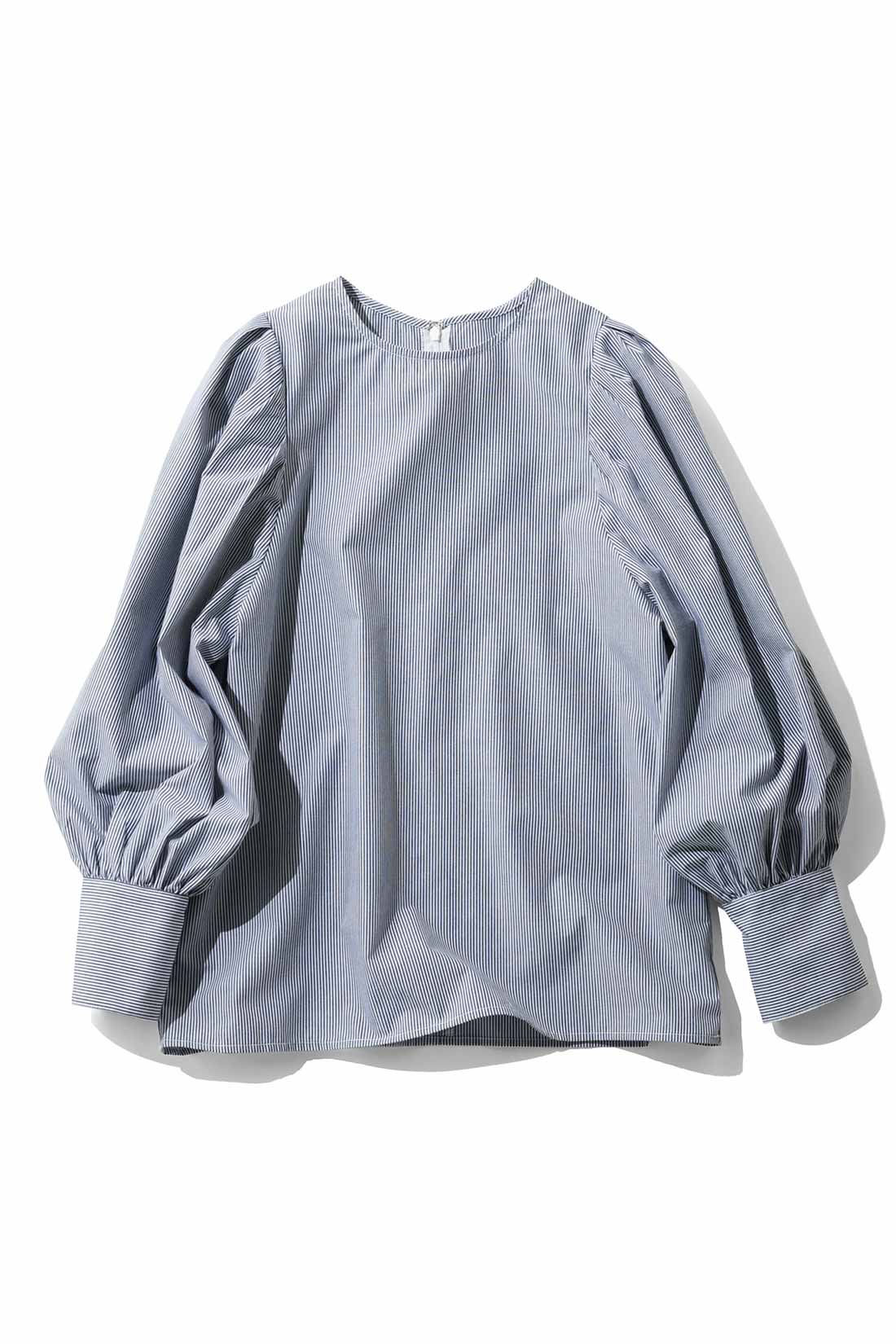 フェミニンなストライプのブラウスは、スニーカーなどカジュアルなアイテムと合わせるのもおすすめ。合わせ方によって、ボーイッシュと女性らしさの相反するエッセンスが引き立て合うスタイリングに仕上がります。