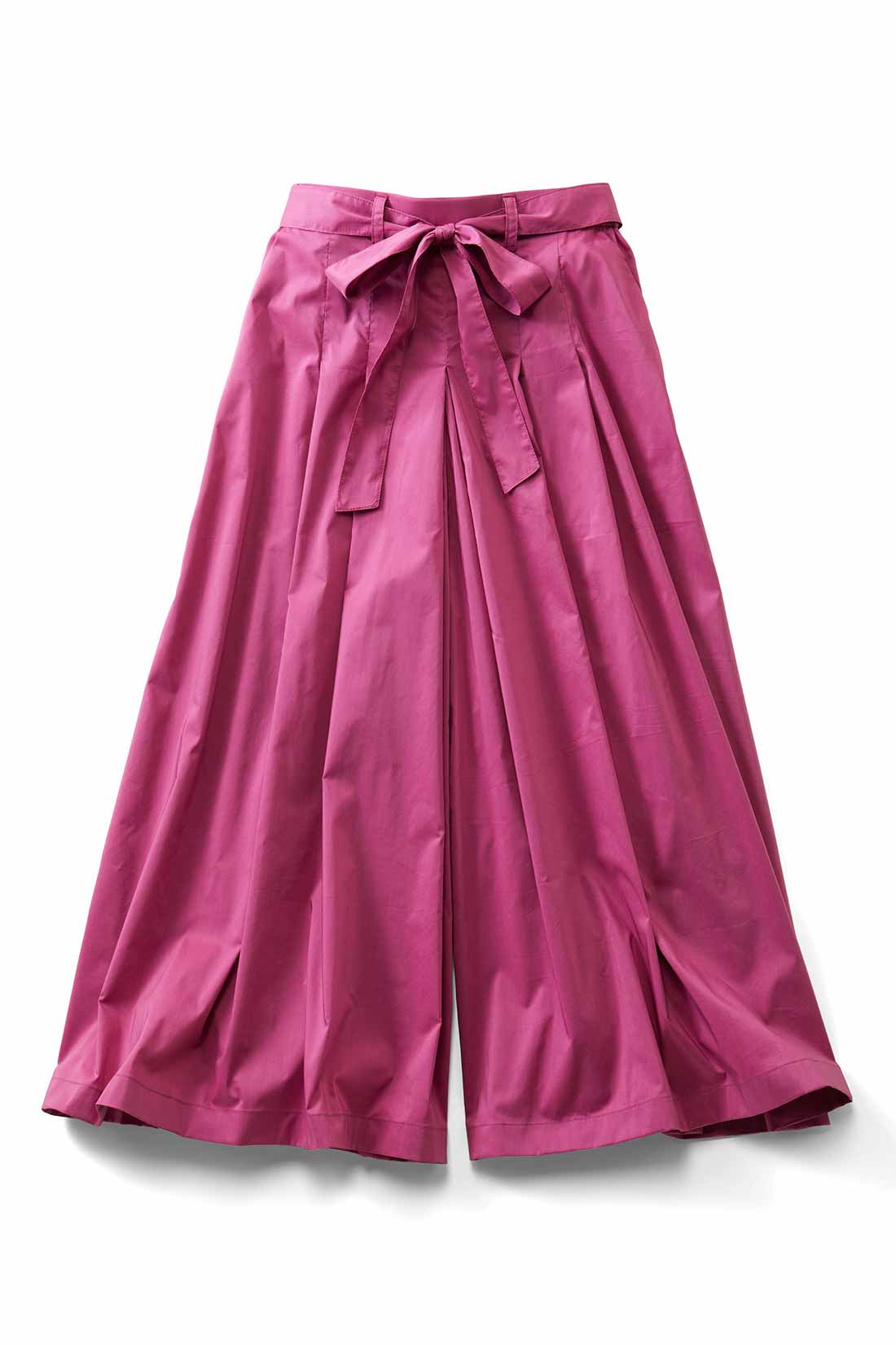 インパクトとボリュームのあるピンクのデザインパンツは、ハイウエストを生かしてトップスをすっきりとまとめるのがおすすめ。上品なフェミニンスタイルに仕上がります。