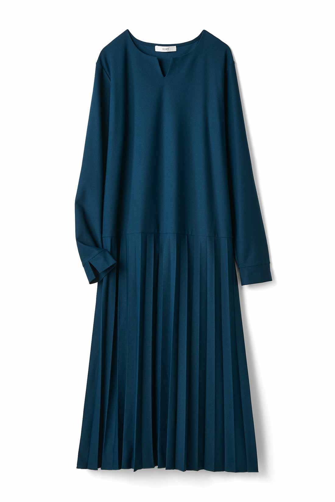 落ち感のあるカットソー素材のワンピースは、首もとと肩まわりはすっきりコンパクトにし、Iラインのシルエットをプリーツで切り替えることでメリハリを出しています。らくな着心地できれいめに着こなせるので、秋のヘビロテになりそうな一着。爽やかなブルーグリーンとシックなブラックの2色展開です。