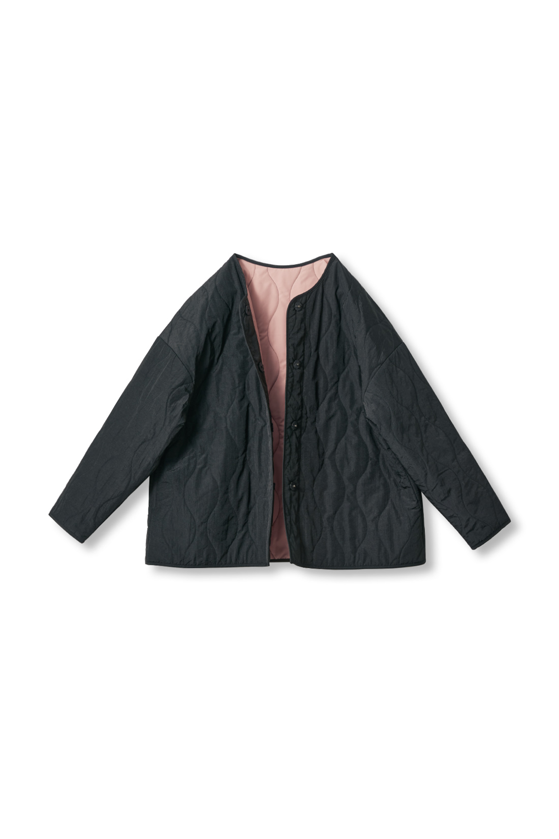 アウトドア感を抑えたトラッドなムードも漂うキルティングジャケットは、きれいめな着こなしとも好相性。ナイロン素材ならではのマットな光沢とキルティング模様が、シンプルな着こなしに着映え感とキレを加えてくれます。すっきりと見えるノーカラーやスタイリッシュなデザインなので、どんなラフスタイルとも合わせやすく、鮮度UPが狙えます。