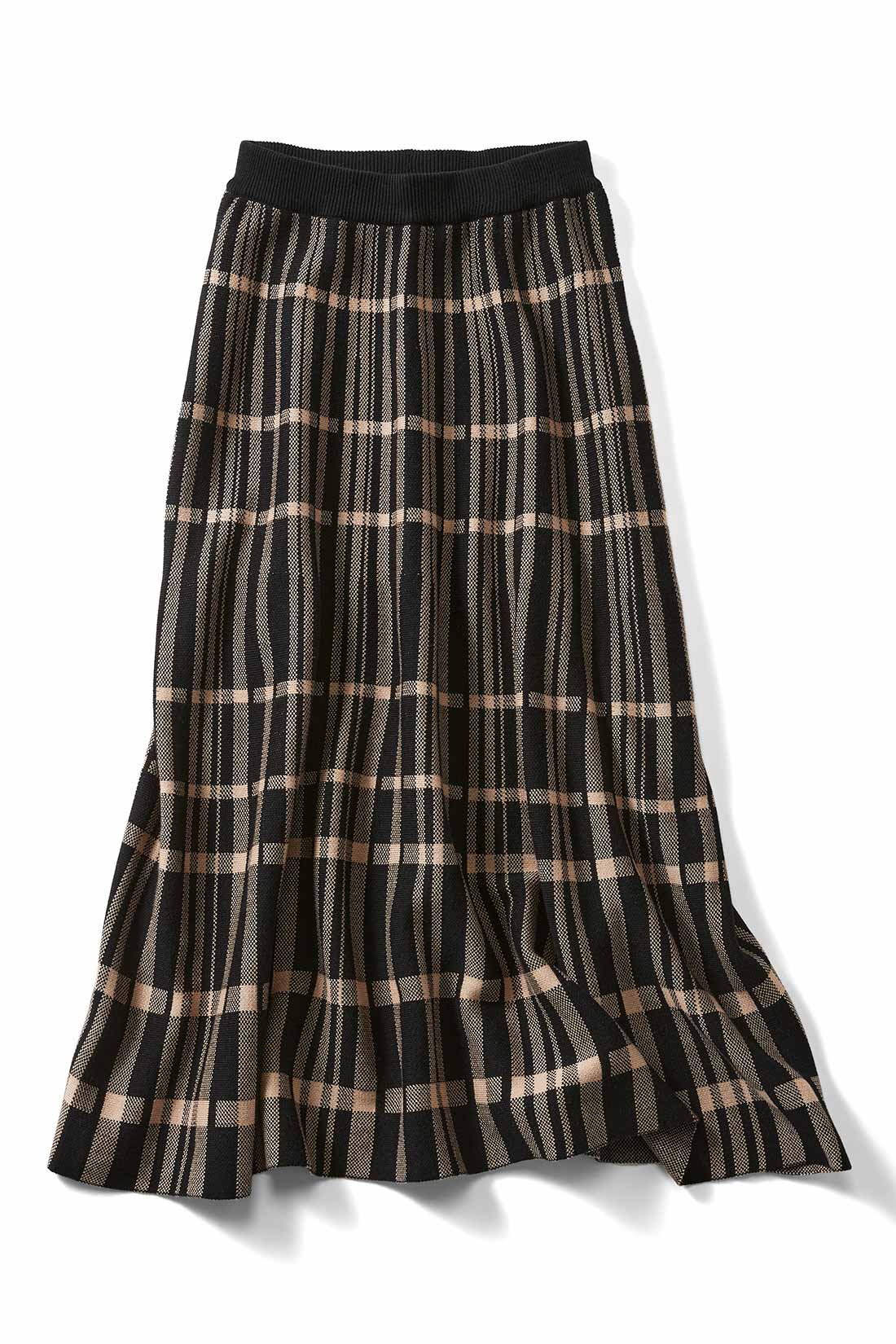 ブラックを基調に、ベージュのチェック柄が映えるAラインスカート。ニット素材で着心地はらくちんなのに、裏地なしでも体形を拾いにくい、もっちり厚みのあるダブルジャカードがリッチで、腰まわりをすっきりとカバーしてくれ、大人カジュアルな中にもほどよくモード感をプラスした装いに仕上げてくれます。