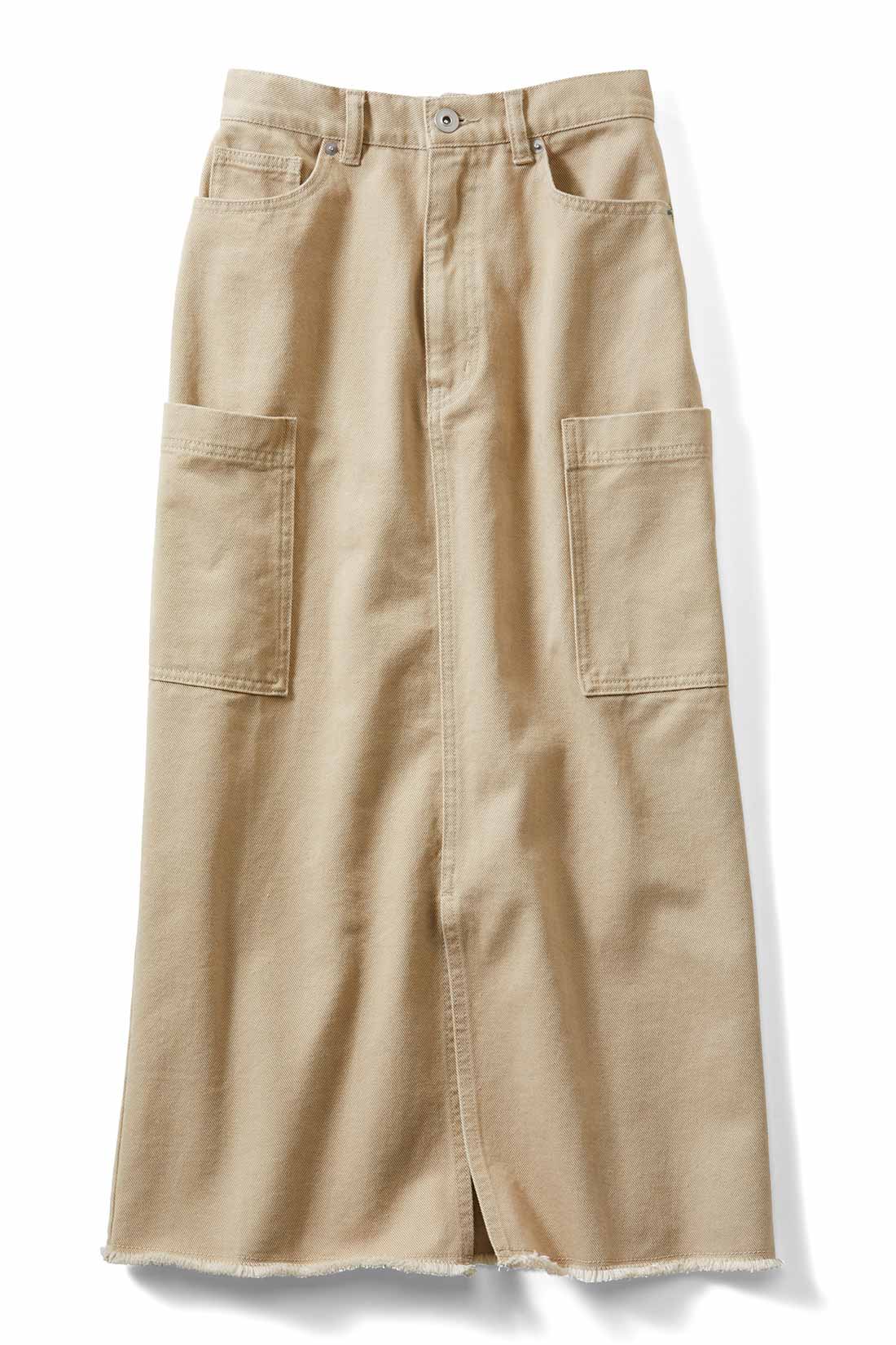 両サイドのカーゴポケットとすそのフリンジがラフな印象のIラインスカート。かっこいいけど女性らしい、この秋注目のタイトシルエットはロング丈&抜け感の出るスリット入りデザインのものがおすすめです。すそのリメイク風デザインがこなれた印象で、オールシーズン着まわせるのもうれしいポイントです。