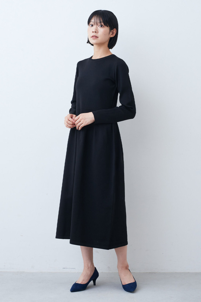 キレイめでセレモニースタイルとしても使いたいなら、ジャストサイズのブラックワンピースが鉄板。ストレートさんのキレイなくびれを強調でき、着痩せ効果が抜群です。形自体はシンプルなので、アクセサリーやジャケットなどで華やかにしやすいのもポイント。バランスの取れた骨格を活かしたいならマストバイな1着です。