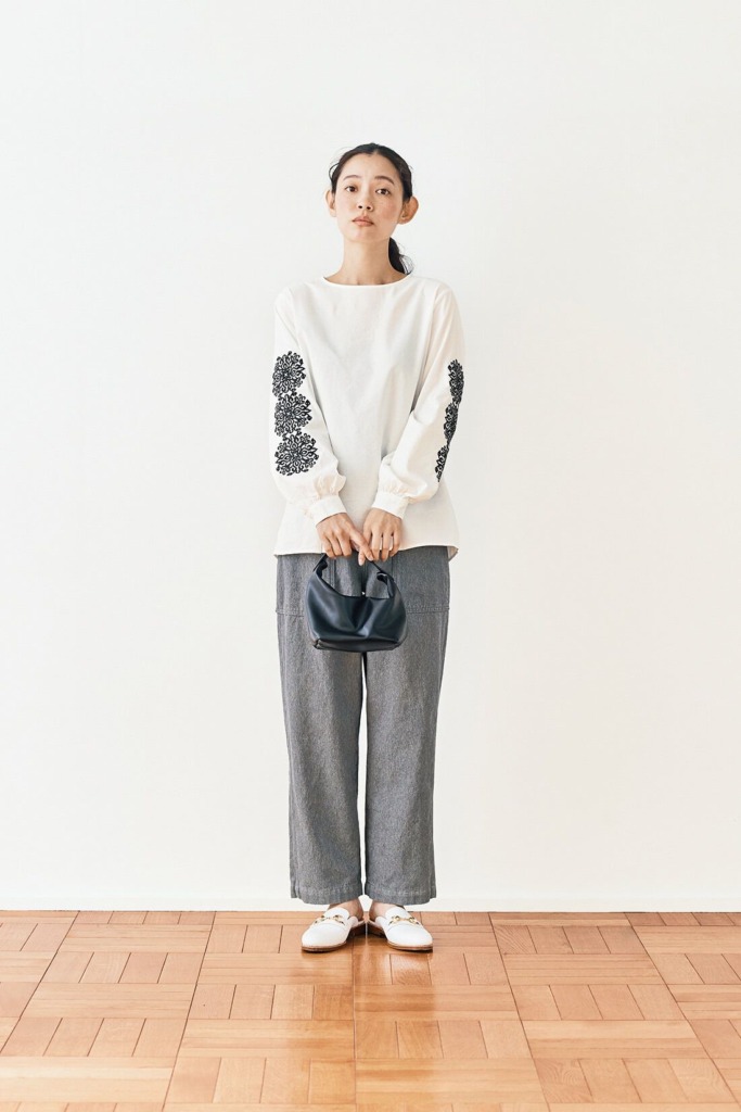 刺繍ブラウス×ワイドデニムで作る爽やかナチュラルコーデ