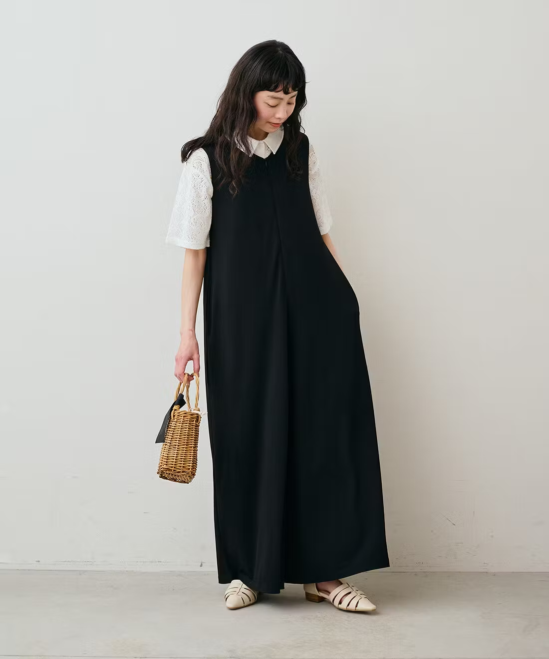 きちんと見えするクレリックワンピースを一枚で上品に