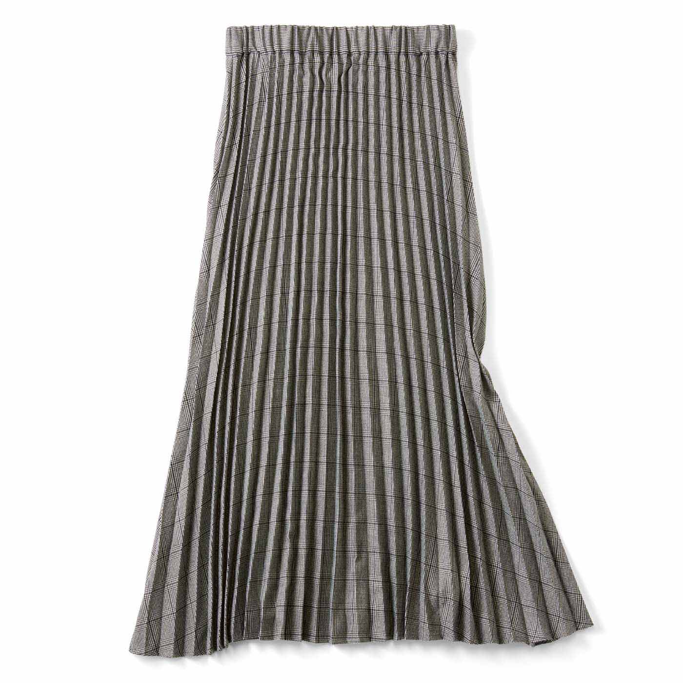 定番の黒ニットに、揺れ感がエレガントなプリーツ風スカートを合わせたきれいめコーデ。スカートはひざ下丈かつモノトーンのジャカード生地だから、甘すぎずシックな印象にきまります。洋服の上品な雰囲気に合わせて、小物はかっちりしたレザーバッグやブーツで引き締めるのが正解。フェミニン派のママにぴったりな授業参観コーデです。