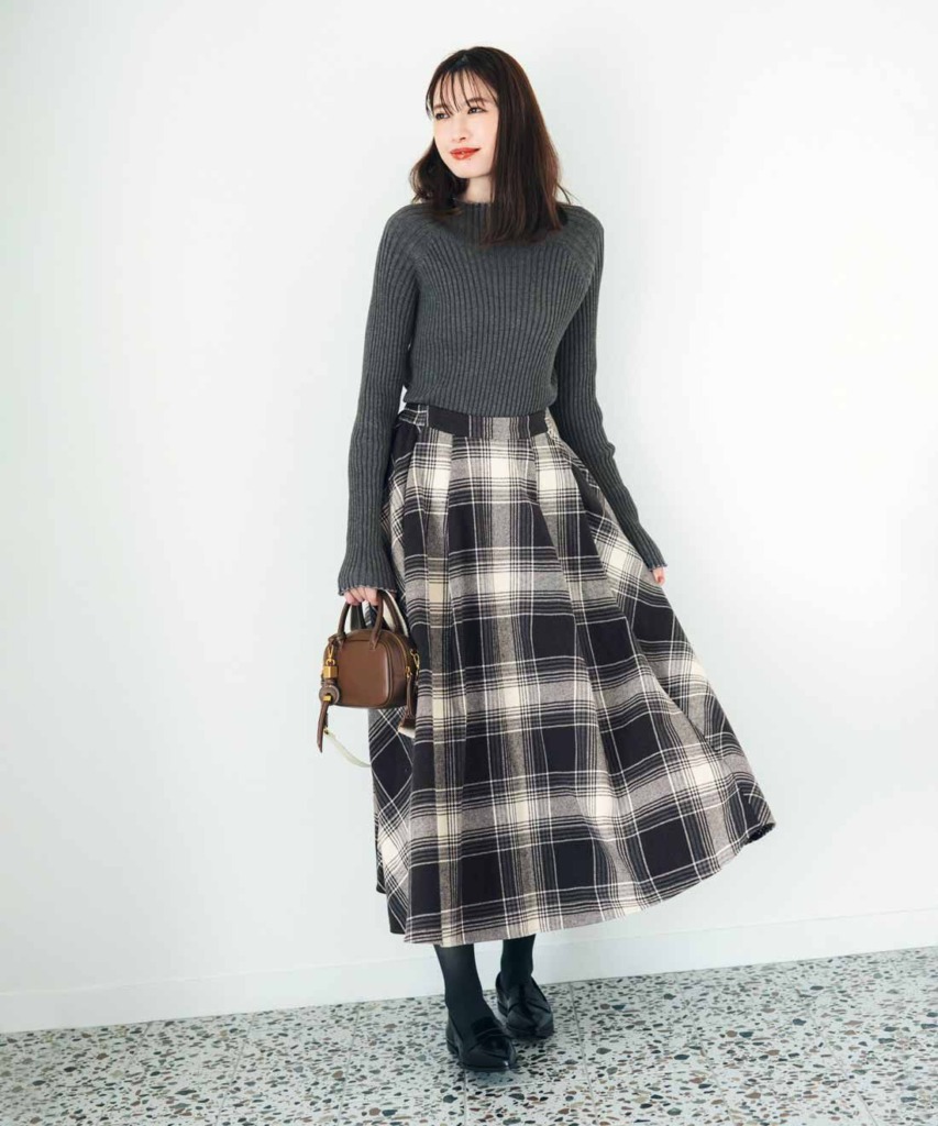 真冬のオフィスカジュアルはチェックスカートでレディーに決める