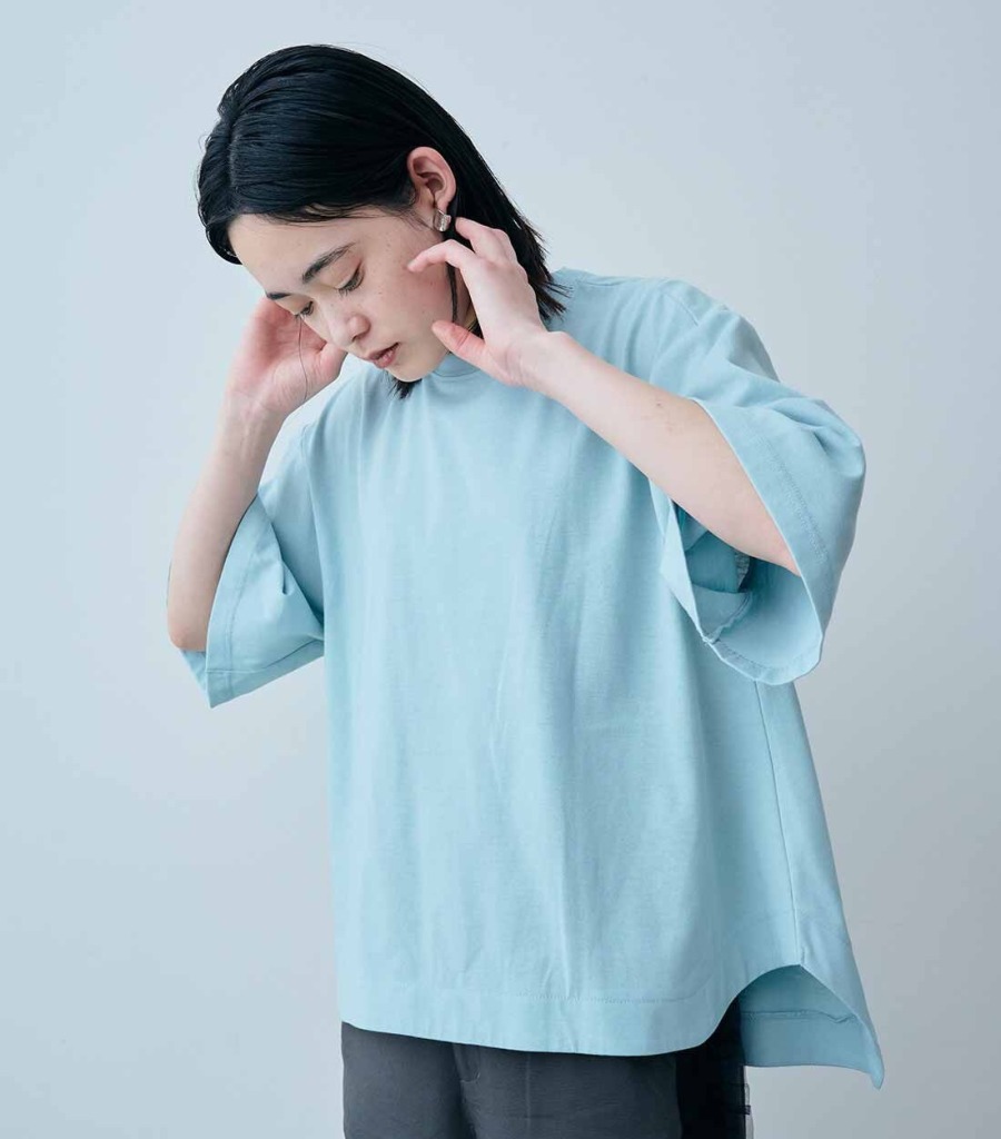 シンプルなTシャツかと思いきや、着てみるとフレアー感のあるシルエットが絶妙!「1枚だとなんかしっくりこない……」ということも多いTシャツだけど、これだけでサマになるところがおすすめです。しかも汗ジミ軽減加工というのも高ポイント。暑がりの汗っかきなので、実際夏にはかなり重宝してます。(エディターK)