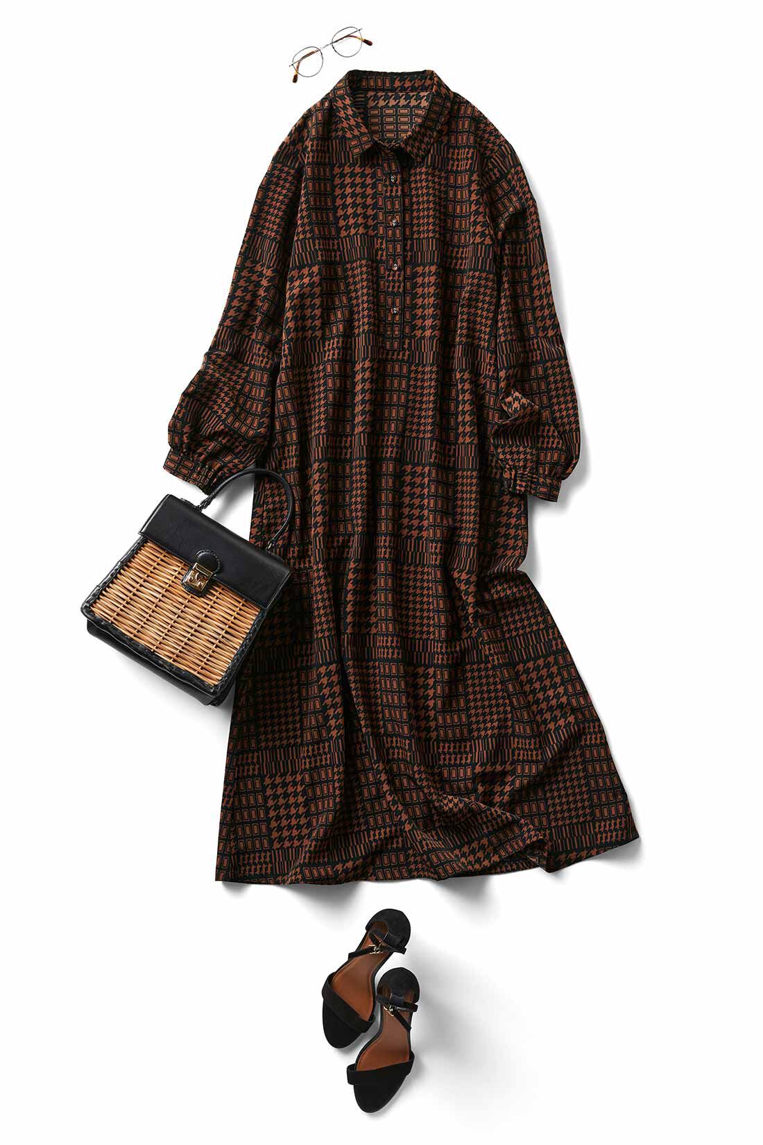 オフィスで定番のモノトーンコーデは、柄スカートを使うとぐっとおしゃれに着こなせます。柄物はクラシカルなチェックがベター。シックな印象なのにかわいらしい雰囲気になり、オフィスにもきちんと馴染んでくれるんです。起毛感のあるスカートなので、メリハリをつけられる革靴でピリッとコーデを引き締めるのがポイント。