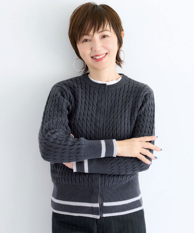 ―――こちらのケーブルニットカーディガンは、ニットなのにキリッとしていて、ハンサムな印象ですね。