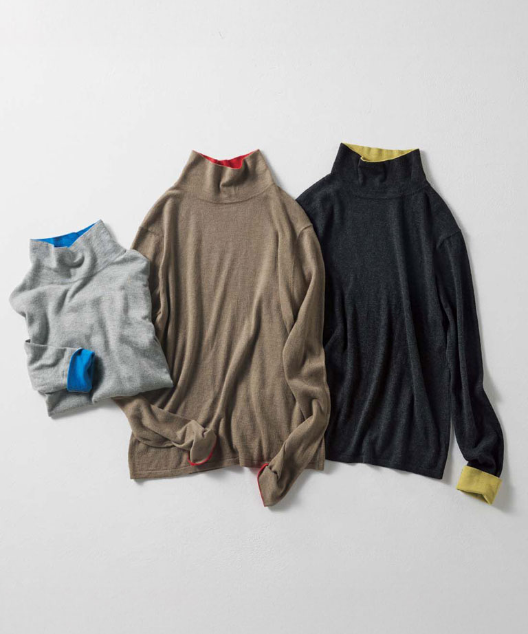 ―――こちらの「好印象カラーのシルク混タートルニットトップス」は、シンプルなデザインの中におふたりの遊び心がたっぷり詰まっているとか。