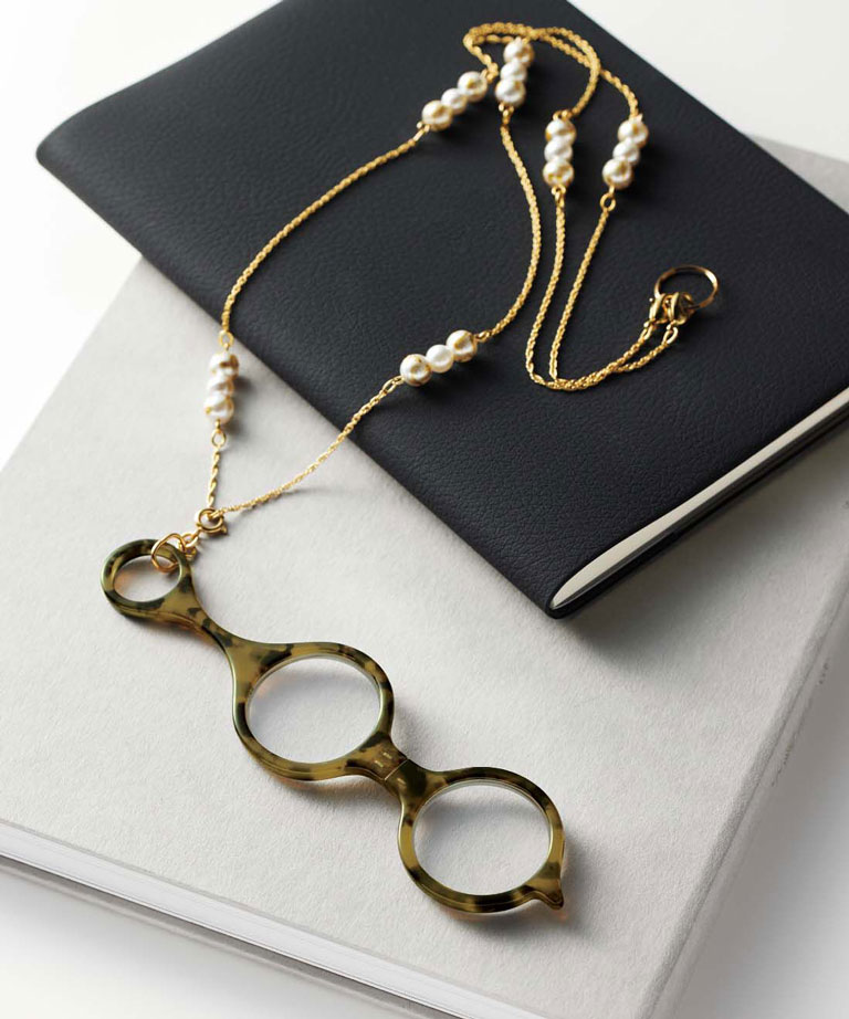 大人世代のあるあるといえば、「細かい文字が見えづらい」ですよね。このルーペ付きネックレスは、本当に画期的! 実用とおしゃれ、両方を満たしてくれる遊び心たっぷりなアイテムです。