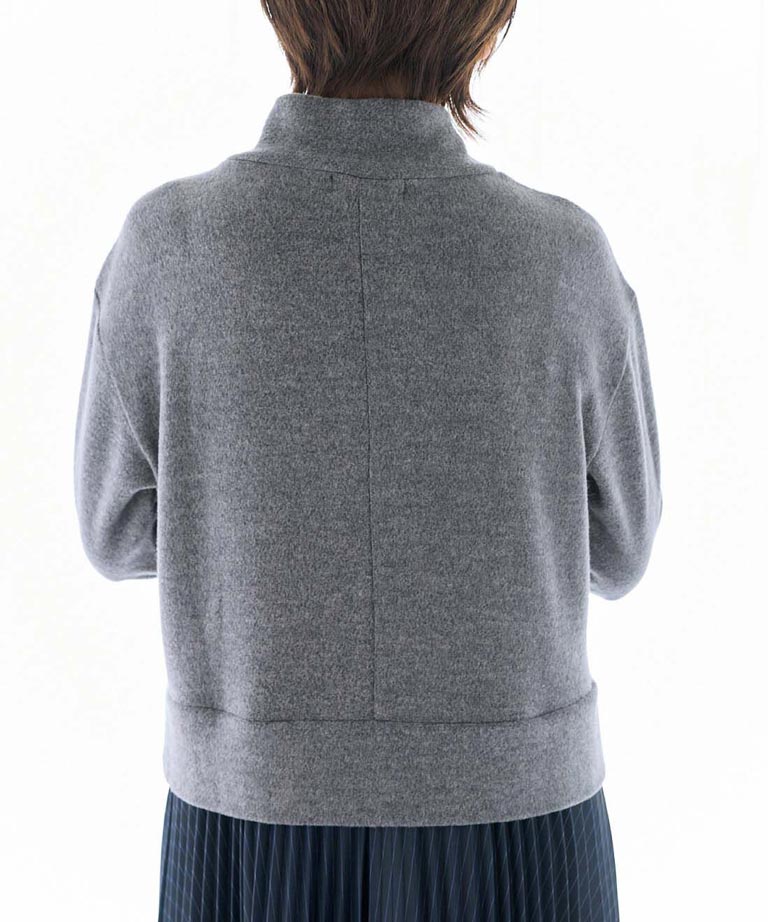 前を閉めてニットトップス風にも着られるし、前を開けてジャケット風に着てもかわいい。前を開けると、比翼部分のグログランテープがチラリと見えて、大人っぽいアクセントになるんです。Tシャツとデニム、みたいなシンプルスタイルにプラスするだけで、グッとあか抜けた印象になると思います。