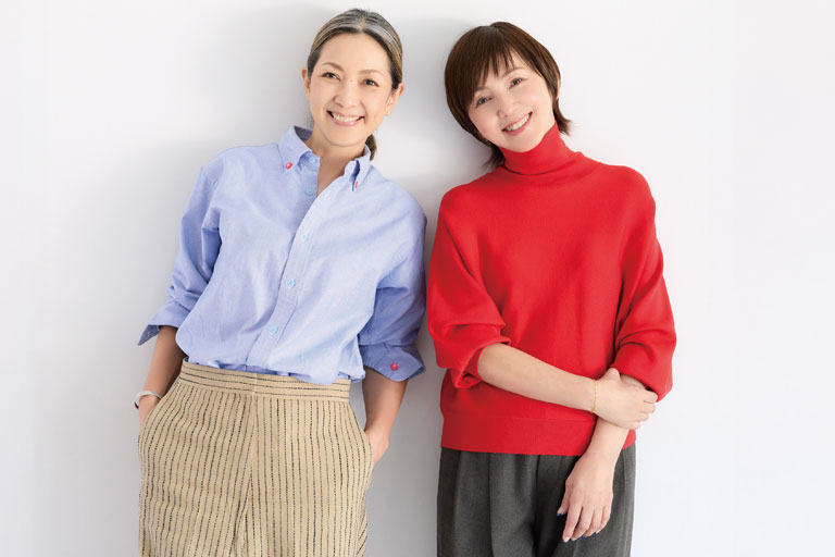 2024年秋に始まったフェリシモのコラボ企画第一弾では、松本孝美さんと渡辺満里奈さんならではのファッションセンスやリアルな「大人世代あるある」を盛り込んだ商品展開が、「そうそう、こんなのが欲しかった!」と大好評に。そして今回、待望の第三弾がついに完成! 渡辺満里奈さんが素敵に着こなしてくださった撮影の終了後、完成したばかりのアイテムを前に、おふたりのこだわりポイントについて話し合っていただきました。