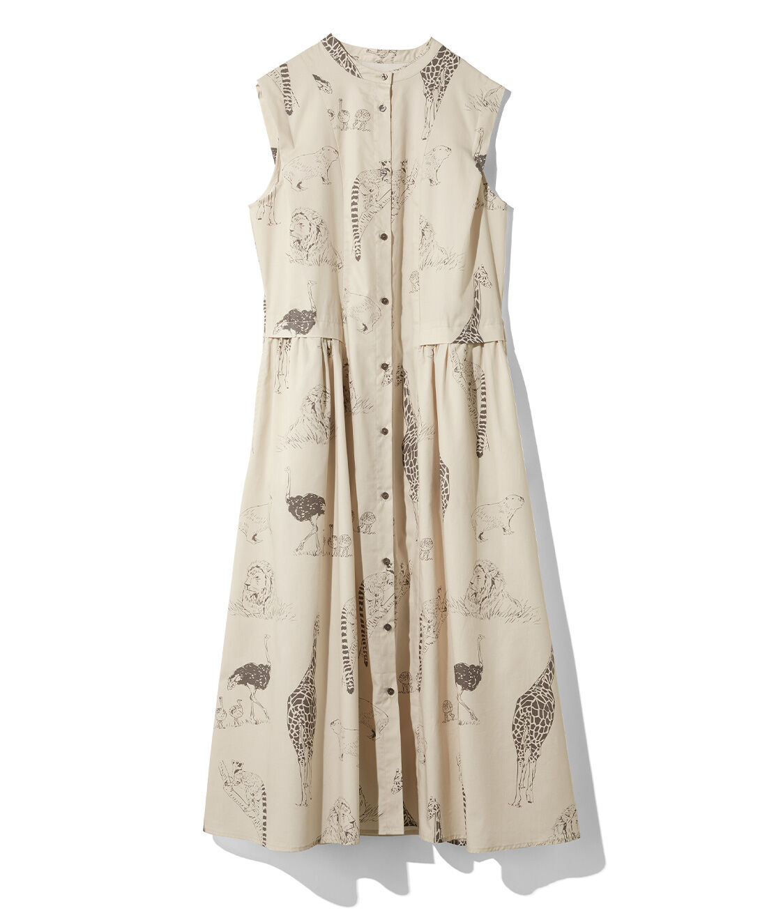 存在感のある総柄ワンピは明るめボトムスでさわやかに