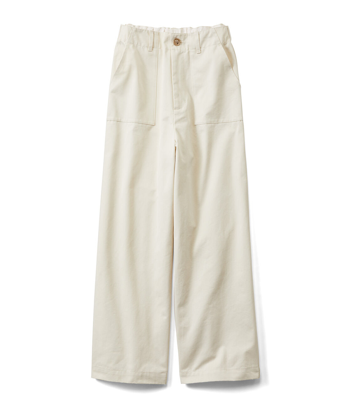 無骨なヘリンボーン生地に、素朴なボタンとポケットがかわいいシャワンピース。ひざが隠れるくらいの丈感なので、パンツをレイヤードして着こなしましょう。やや細身のチノパンは、フレッシュなイエローで差をつけて。キャンバスバッグもイエローでそろえて、遊び心のあるカラーコーデに。