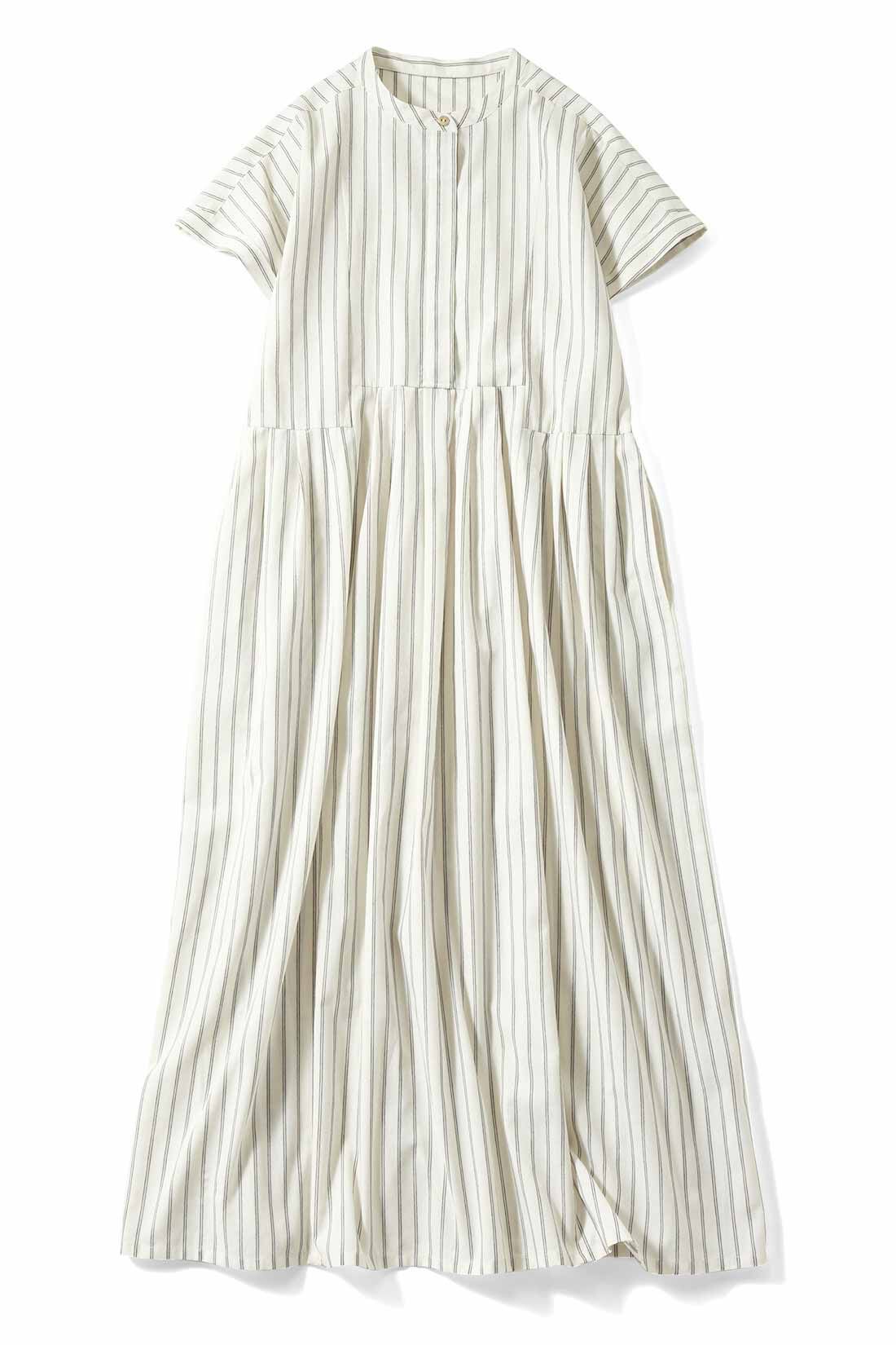普段はカジュアルな服が好きだけど、きちんと見えにも挑戦したいという方におすすめのシャツワンピ。肌がトーンアップする白×黒の極細ストライプは、カジュアルさも残しつつ上品に見せてくれます。ウエスト上の切り替えギャザーが自然と重心をアップさせてくれるので、スタイルアップもかないますよ。スニーカーを合わせればよりラフに、華奢なサンダルを合わせればより品よくまとまります。