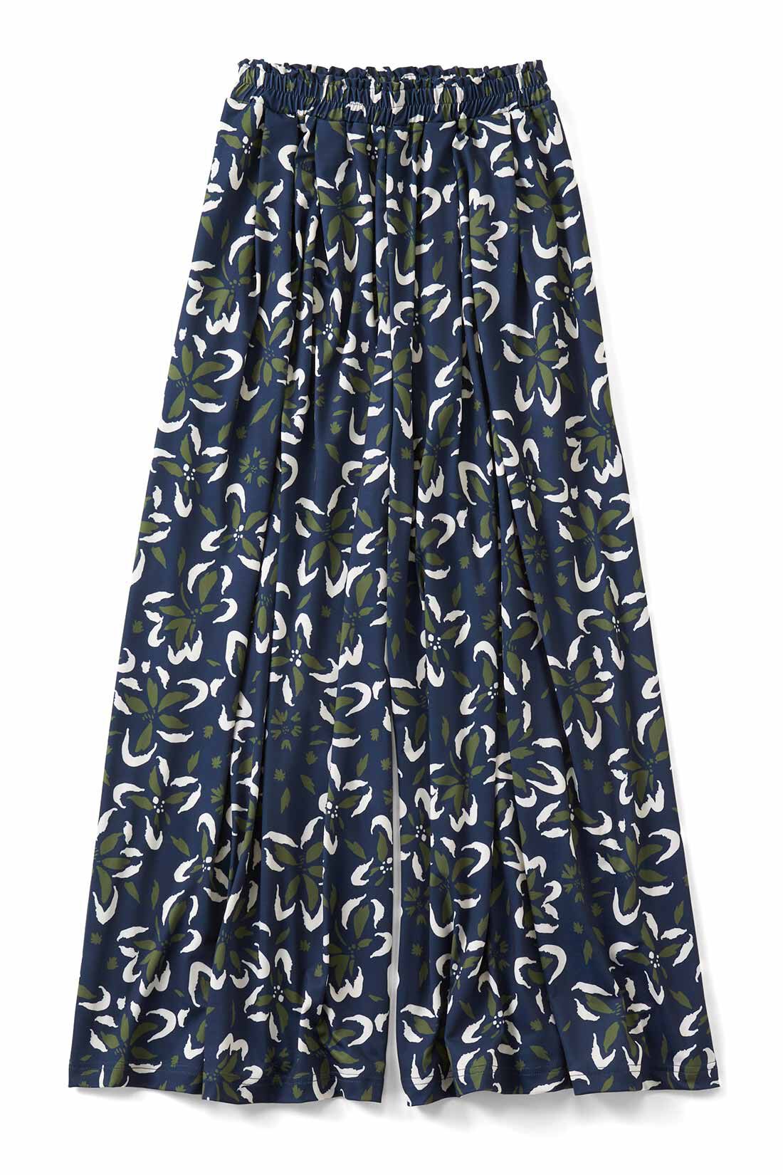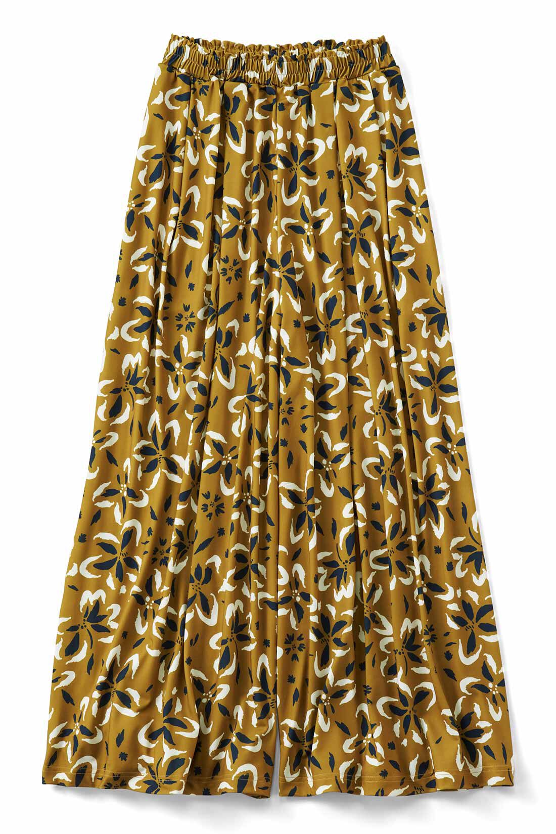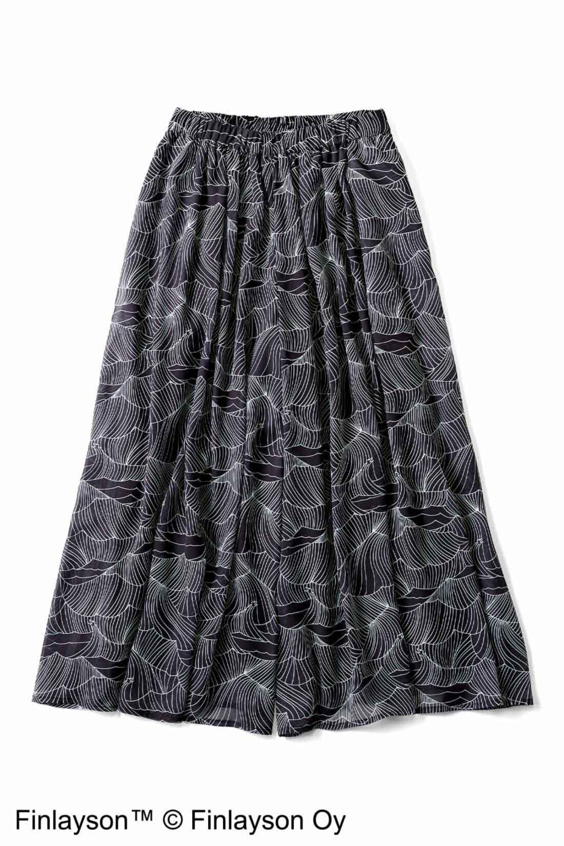 北欧ブランド「フィンレイソン」の繊細なテキスタイルが特別感たっぷり。シックな総柄のガウチョパンツは、スカート見えするシフォン素材を採用しています。シンプルなニットと合わせるだけで、ちょっとしたお出かけもOKの上品コーデに。しわになりにくいので、旅行にもぴったりです。