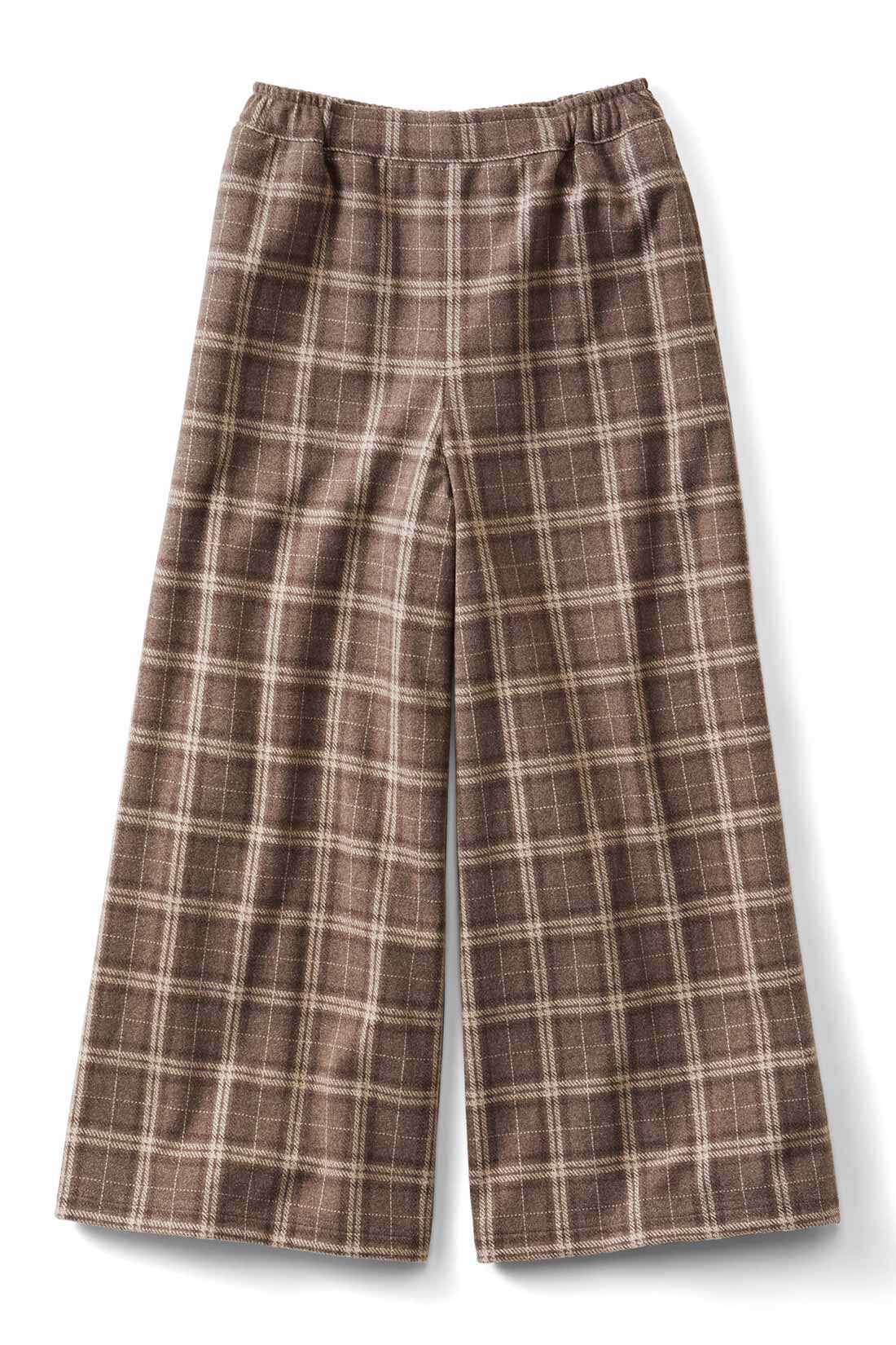 暖かみのあるベージュベースのチェック柄パンツは、秋冬にぴったり。足首がのぞく九分丈ガウチョを選んで、こなれたコーデをつくりましょう。下半身を丸ごとカバーしつつ、足もとはキュッと細見えするデザイン。カラートップスを合わせれば、簡単着映えカジュアルの完成です。