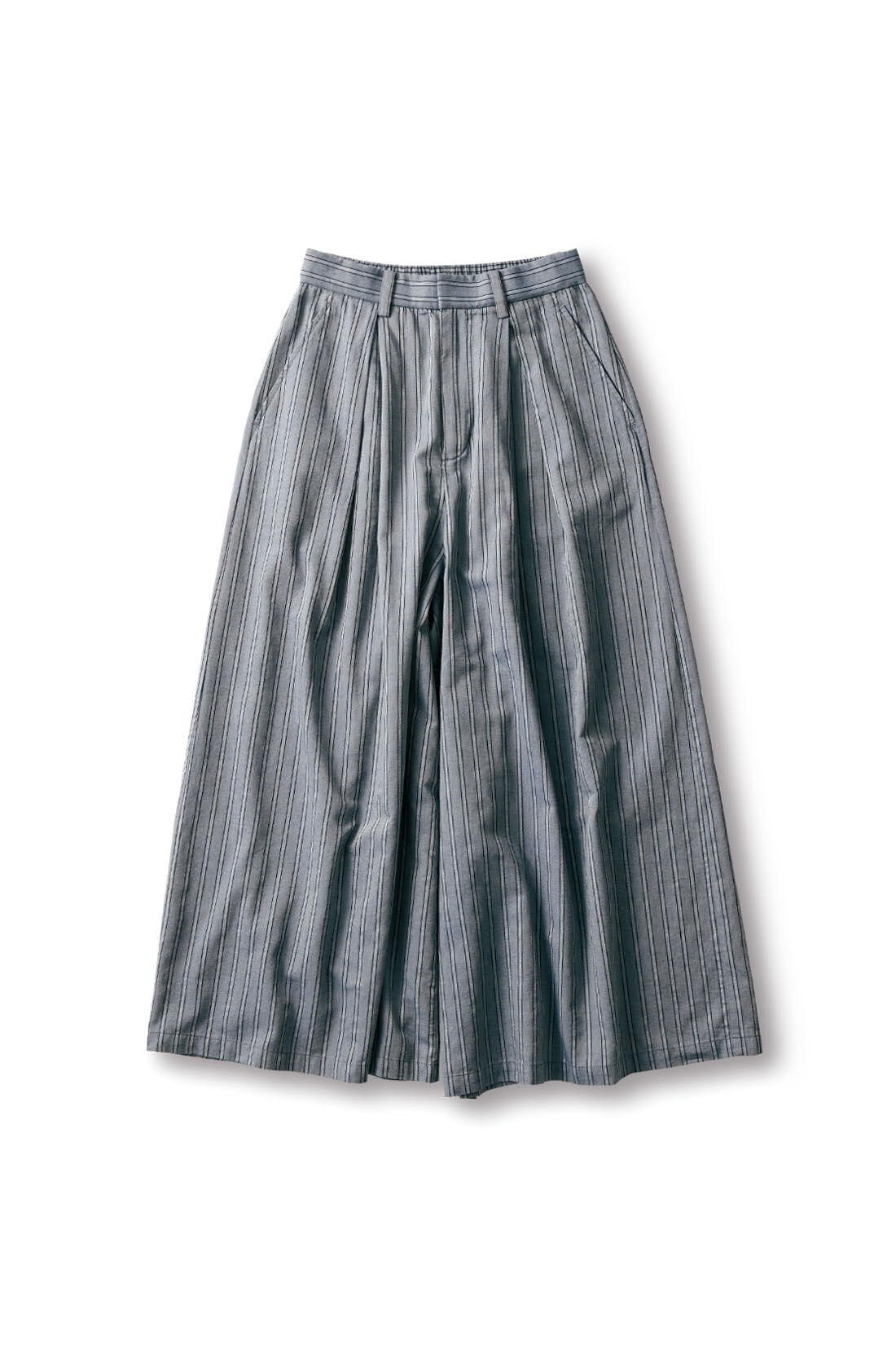 暖かくて扱いやすいトレーナーは、カジュアルすぎるのが玉にきず。スカート見えするガウチョパンツを合わせて、女性らしく着こなすのがおすすめです。細ストライプ柄のガウチョは、フロントのボックスタックがポイント。大人らしい美シルエットで、ワンツーコーデもおしゃれに決まります。