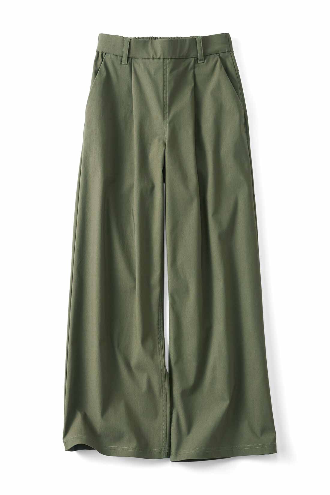 上品なつや感のあるカーキのガウチョパンツは、きれいめ派さんにおすすめ。スカートのようなエレガントさがありながらも、脚さばきよくはきやすい一着です。大人っぽいアースカラーでまとめれば、洗練された印象に。長すぎない丈感は、足首をキュッと華奢に見せる効果もありますよ。
