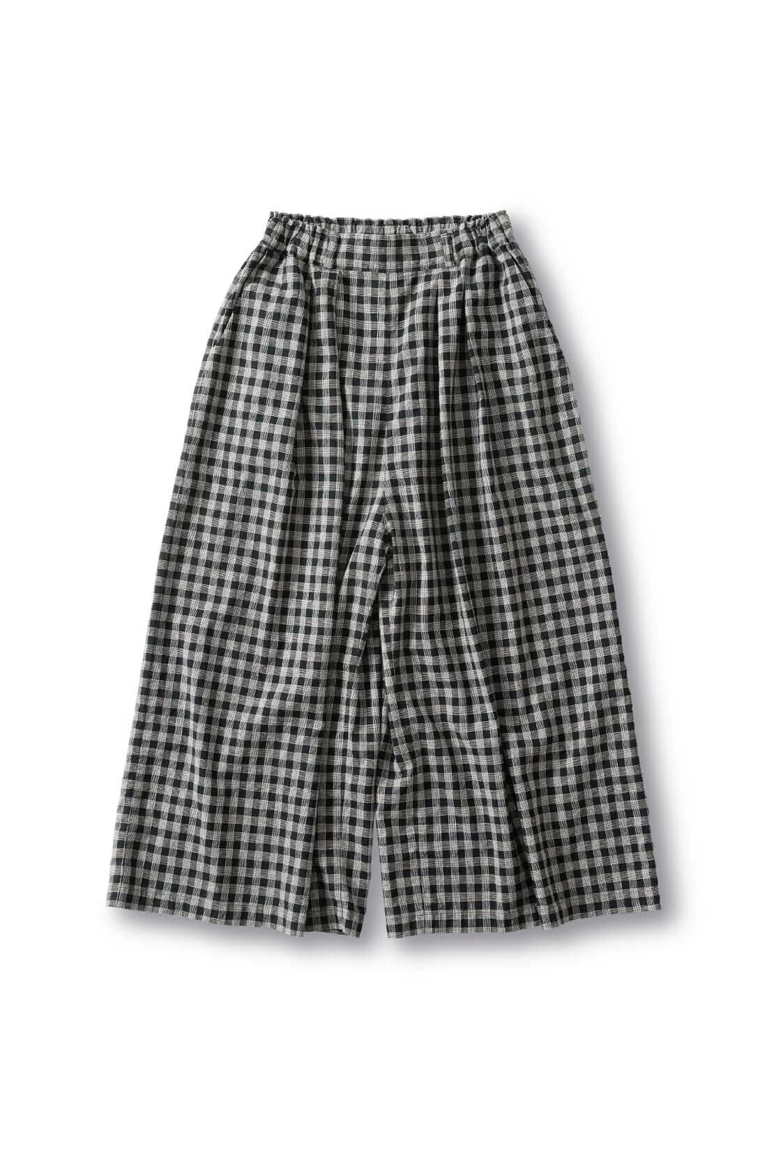 九分丈のチェック柄ガウチョでさりげなく細見えを叶える