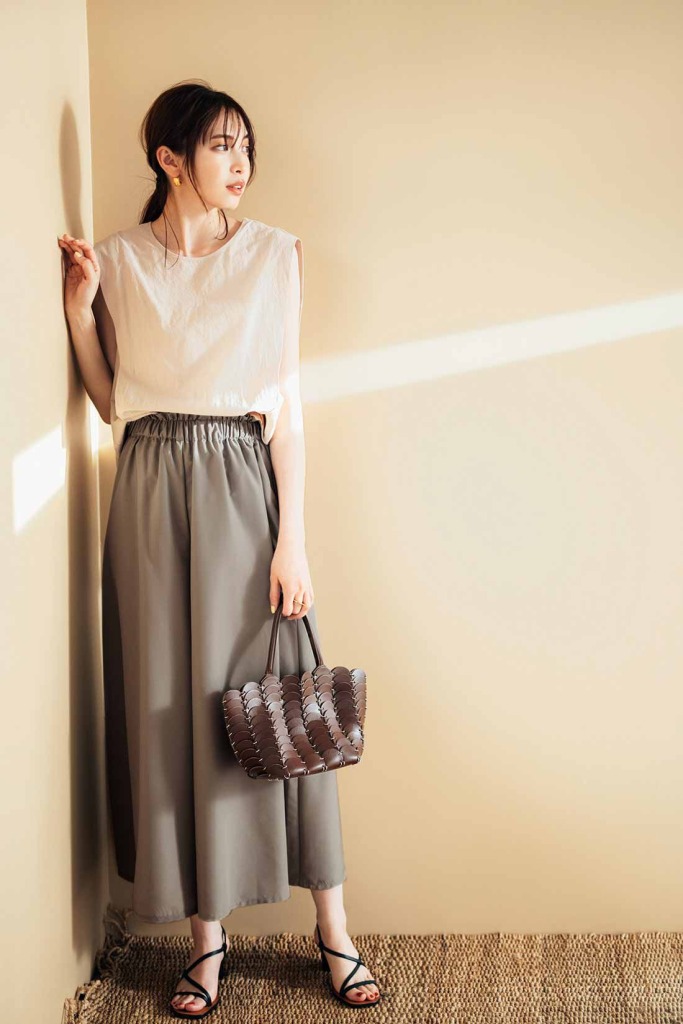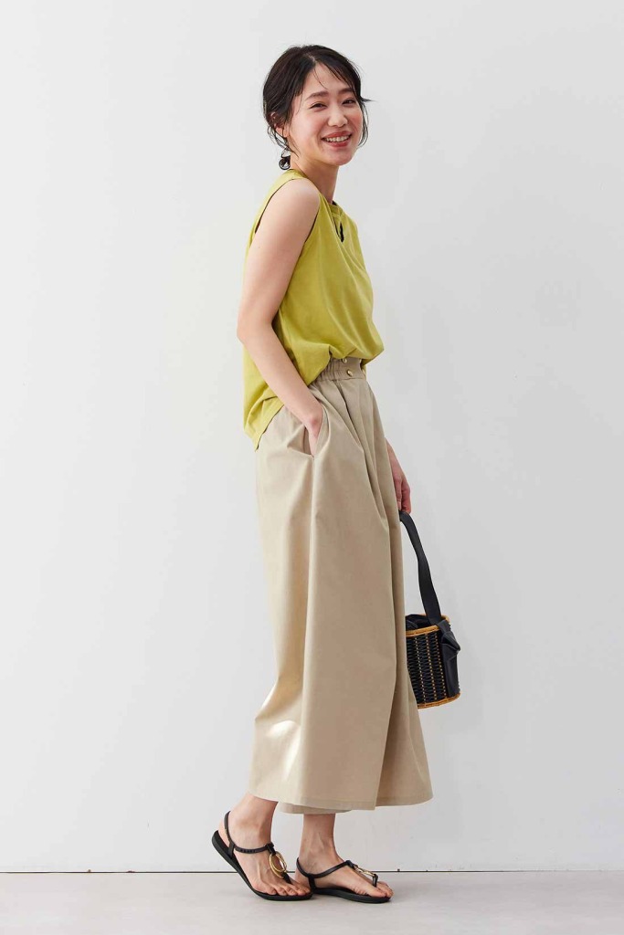 サンドベージュのガウチョでつくるヘルシーな夏コーデ