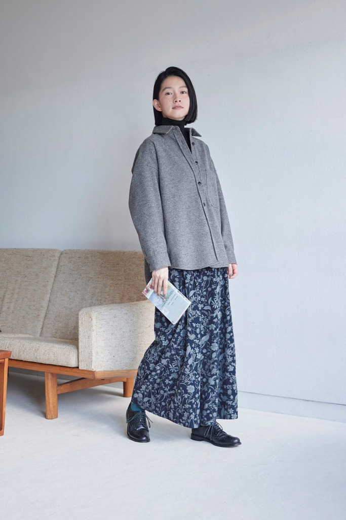 コール天生地の花柄ガウチョで冬コーデを盛り上げて